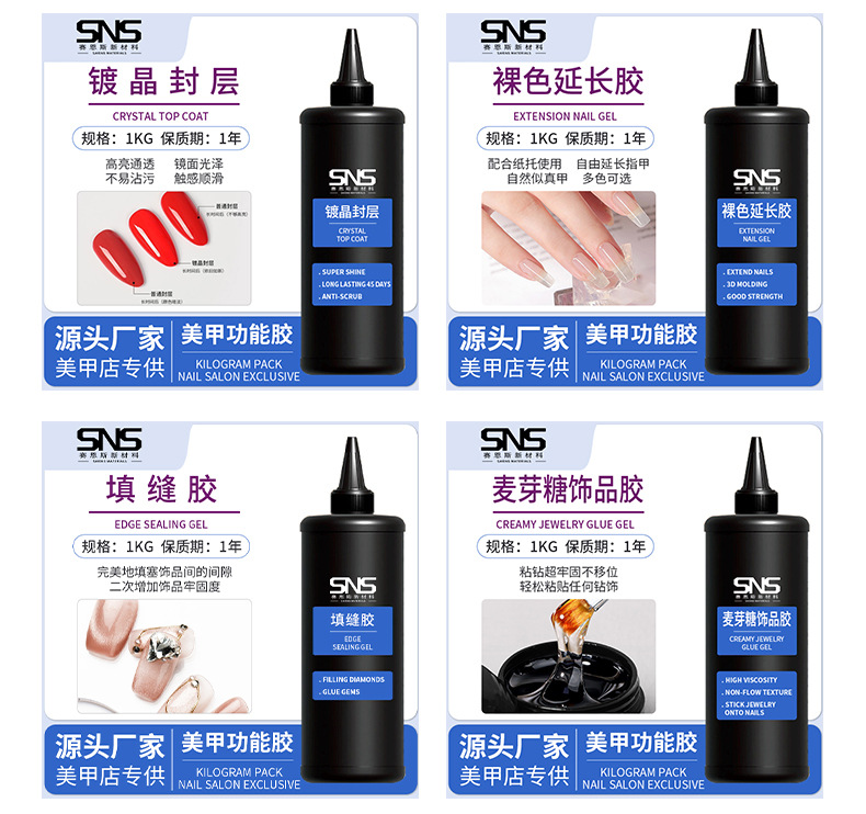 商品名称:SNS赛恩斯 玻璃封层 防污超亮耐黄变甲油胶美甲公斤装工厂