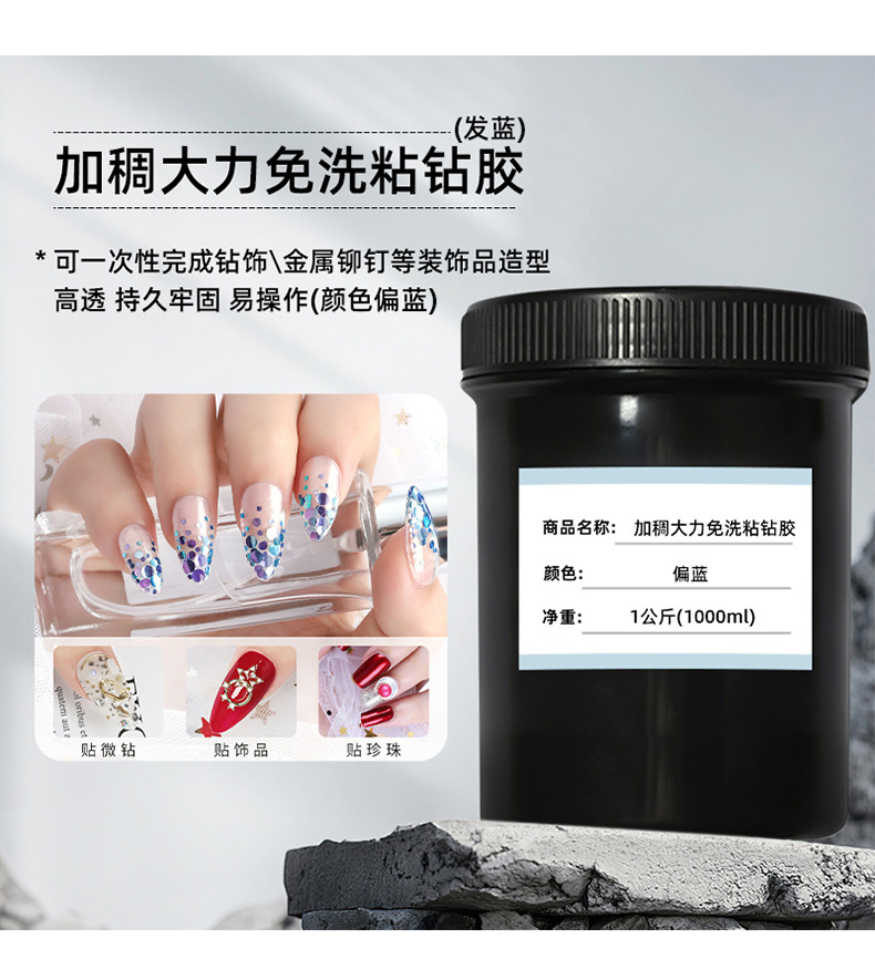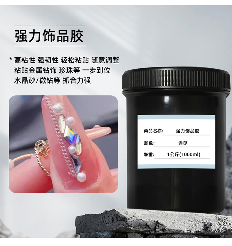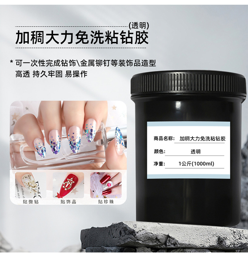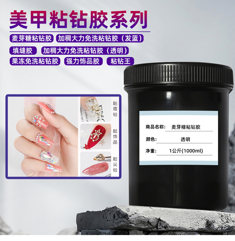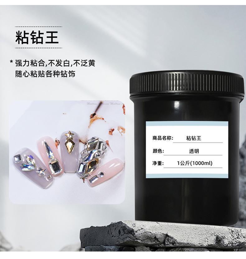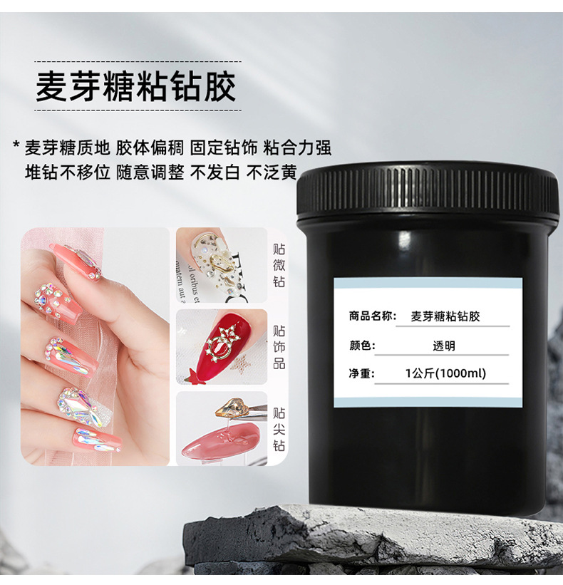商品名称:新款美甲果冻麦芽糖大力免洗粘钻胶粘钻造型填缝甲油胶公斤装批发