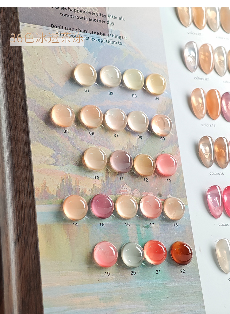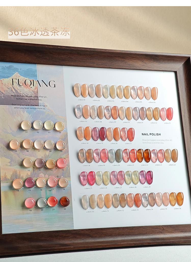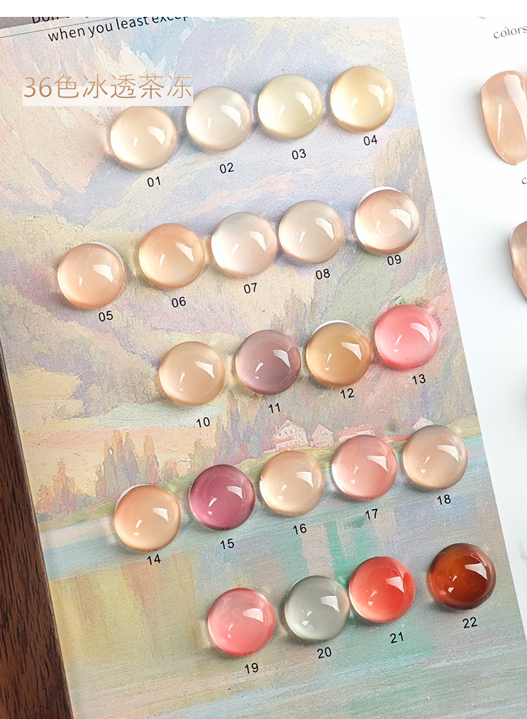 商品名称:馥蔷2025年夏季冰透茶冻36色甲油胶冰透色系裸色美甲店光疗胶套装