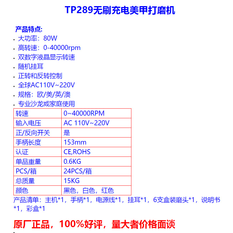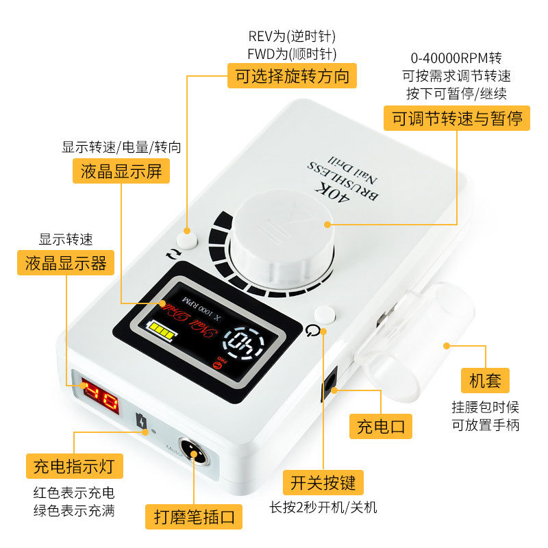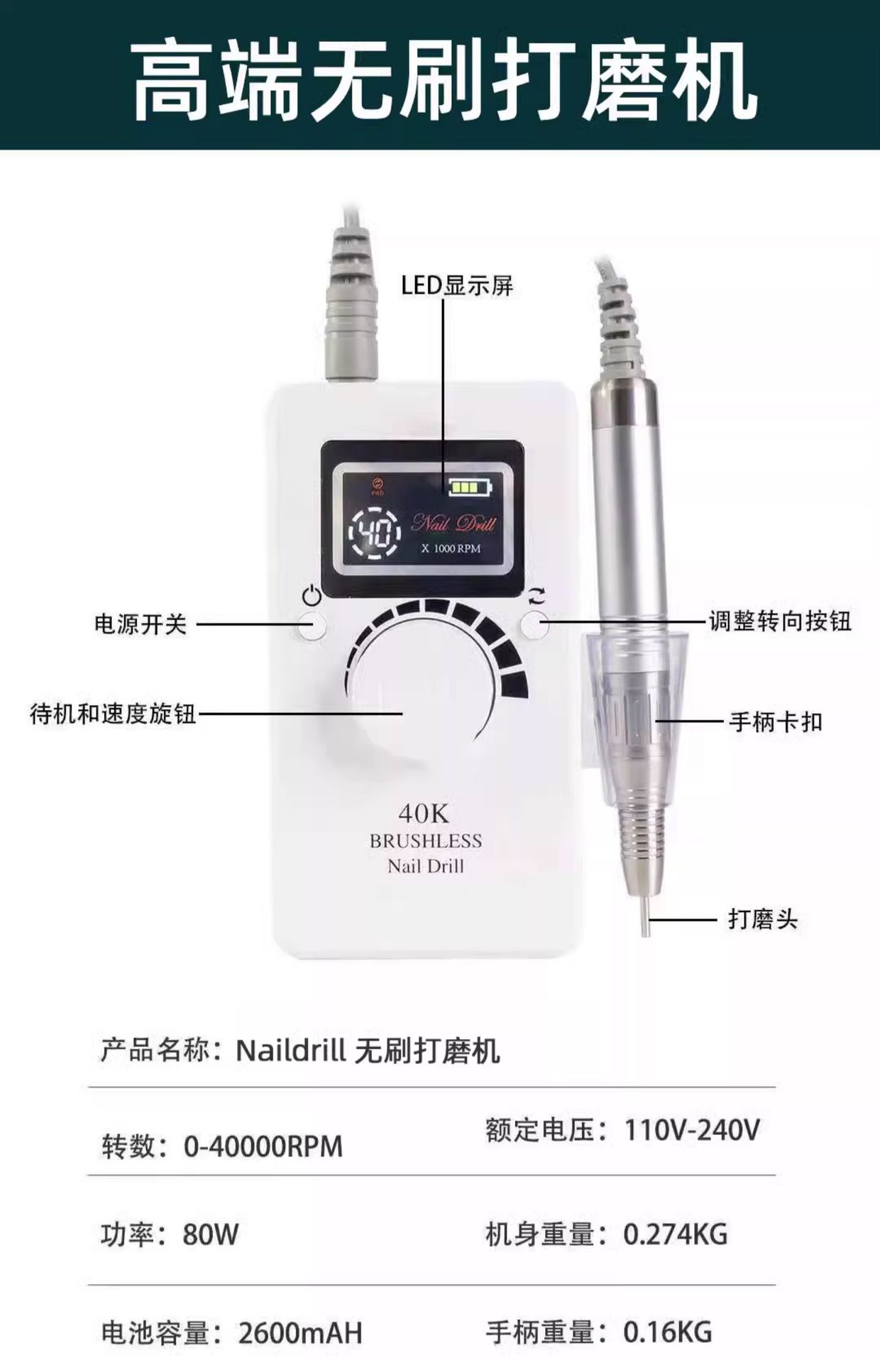 商品名称:美甲打磨机高端无碳刷电机充电蓄电超静音无刷磨死皮茧卸甲器专用
