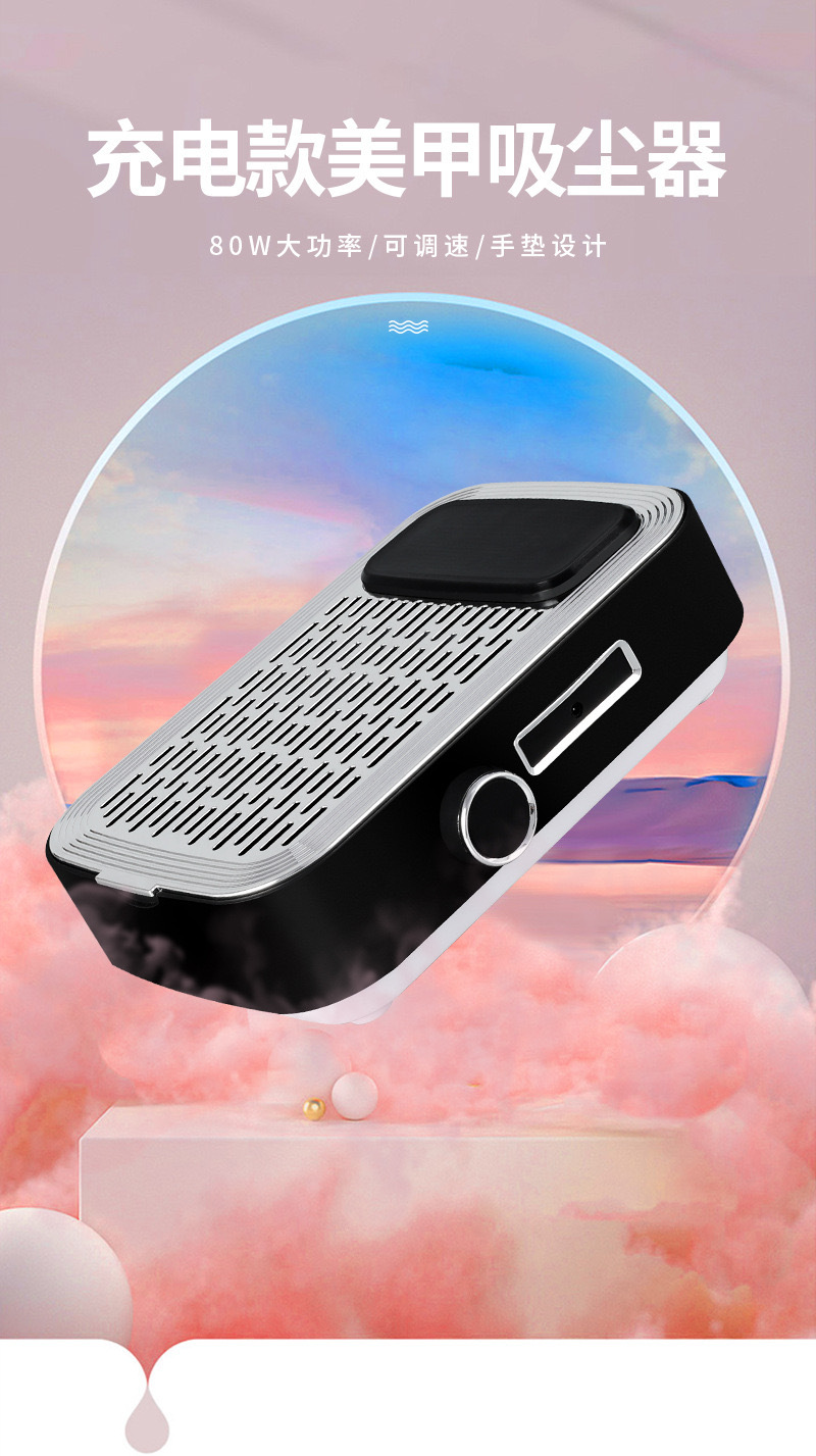 商品名称:大功率无线充电蓄电美甲吸尘器带手枕垫打磨卸指甲粉尘机美甲店用