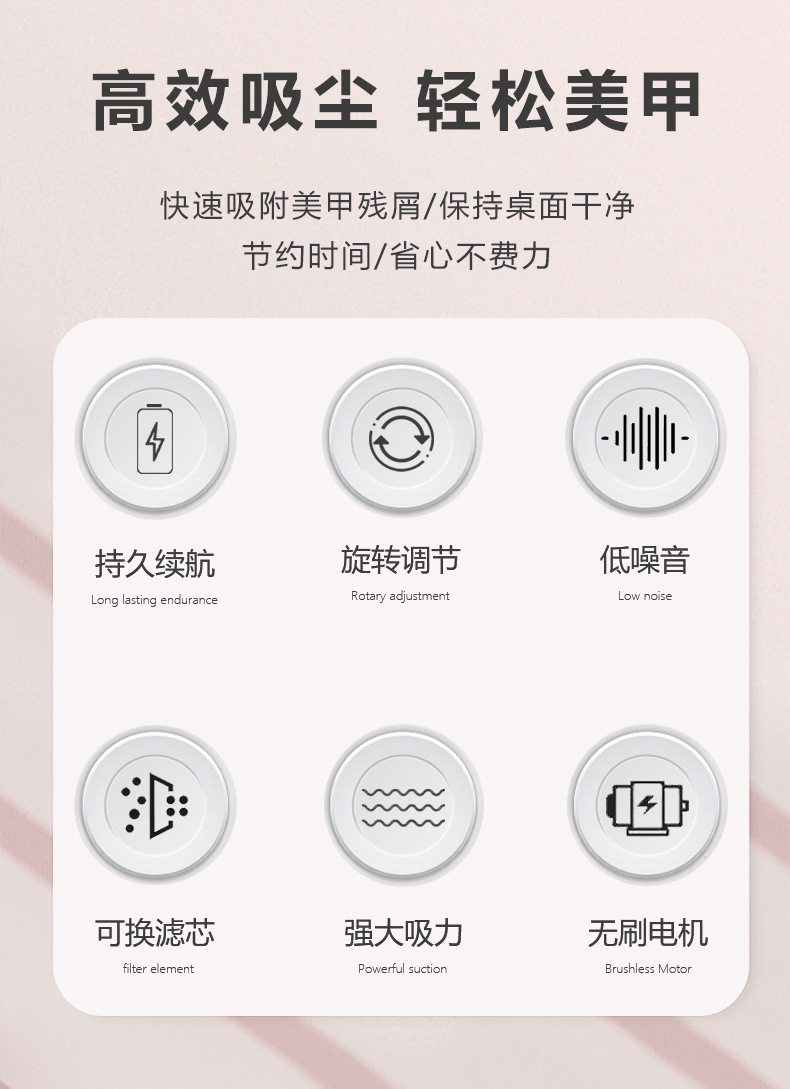 商品名称:涡轮无刷美甲吸尘器无线充电式大功率吸力可调速集尘器打磨除尘器