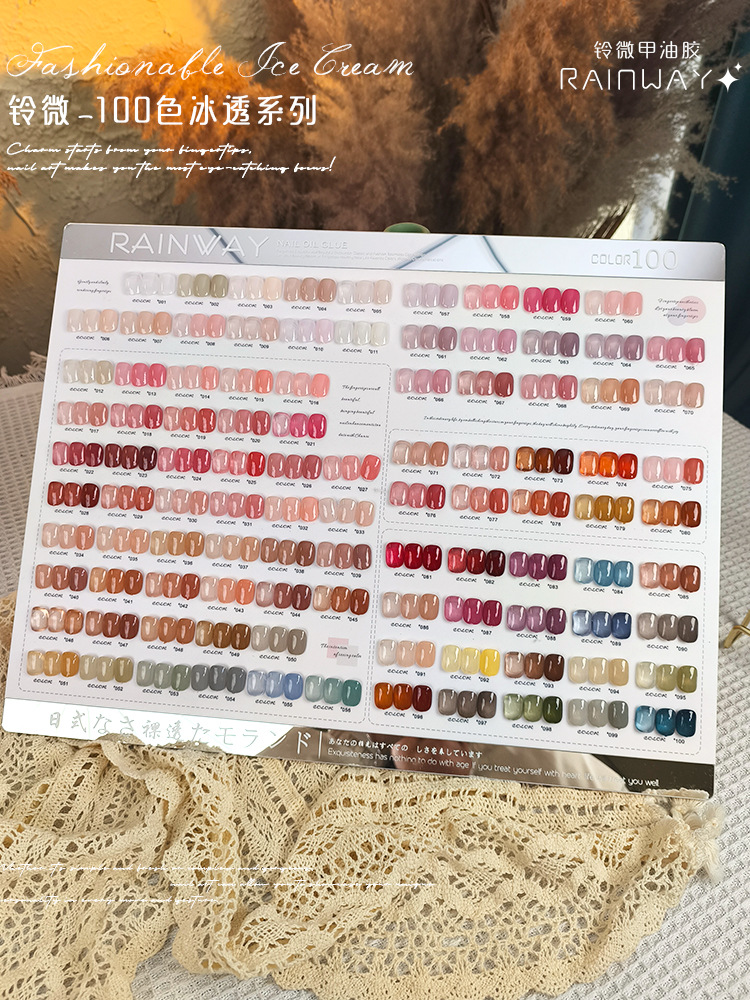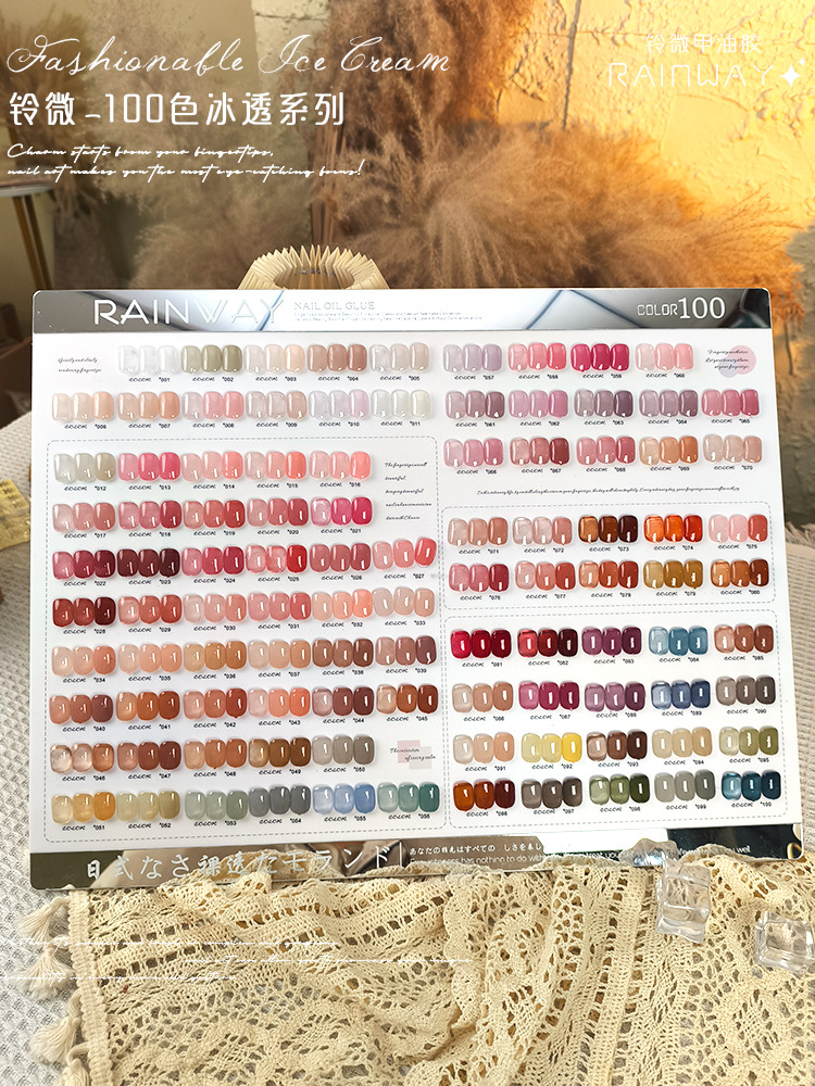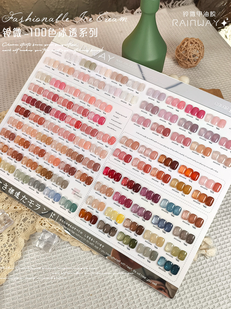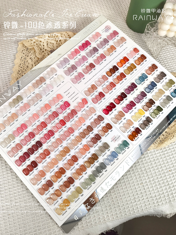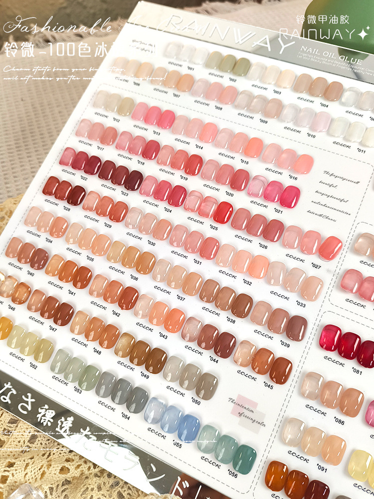 商品名称:铃微100色四季玉脂冰透色甲油胶裸粉果冻透色美甲开店专用套胶