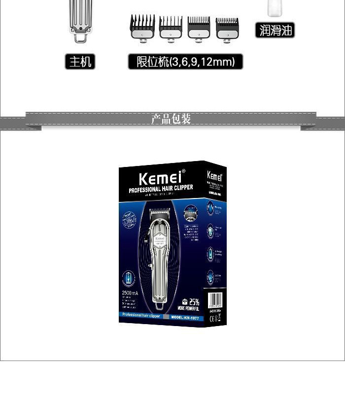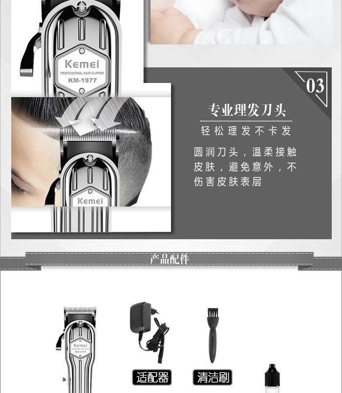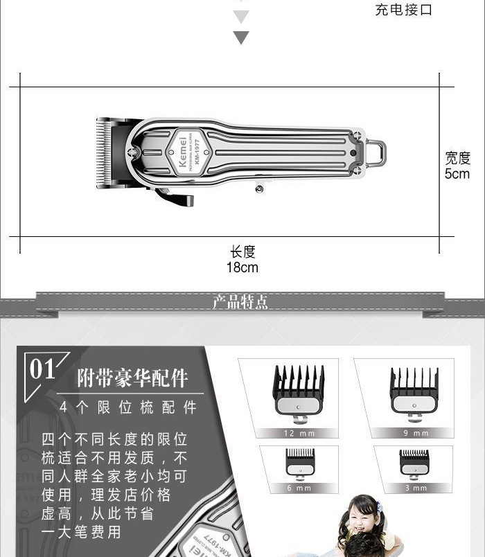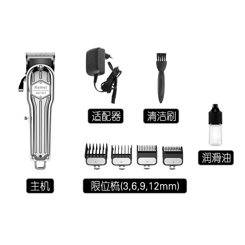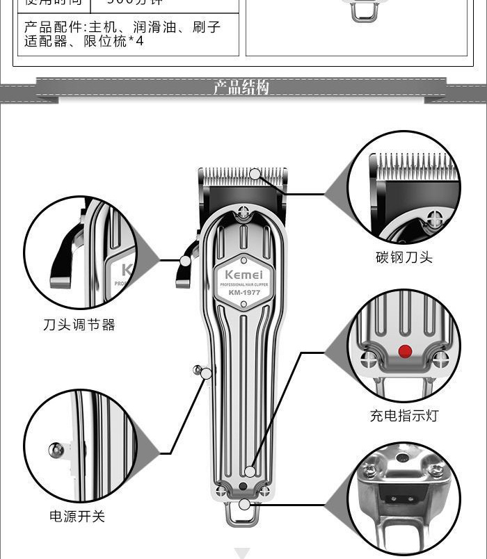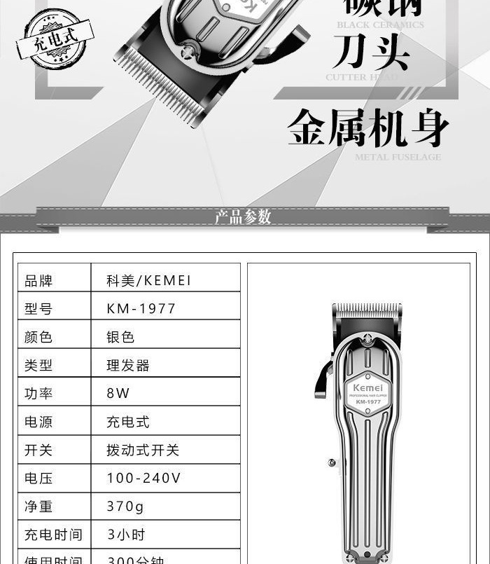 商品名称:科美电推剪KM-1977全身金属可调节碳钢刀头发廊理发器电动剃头
