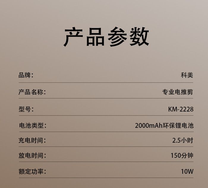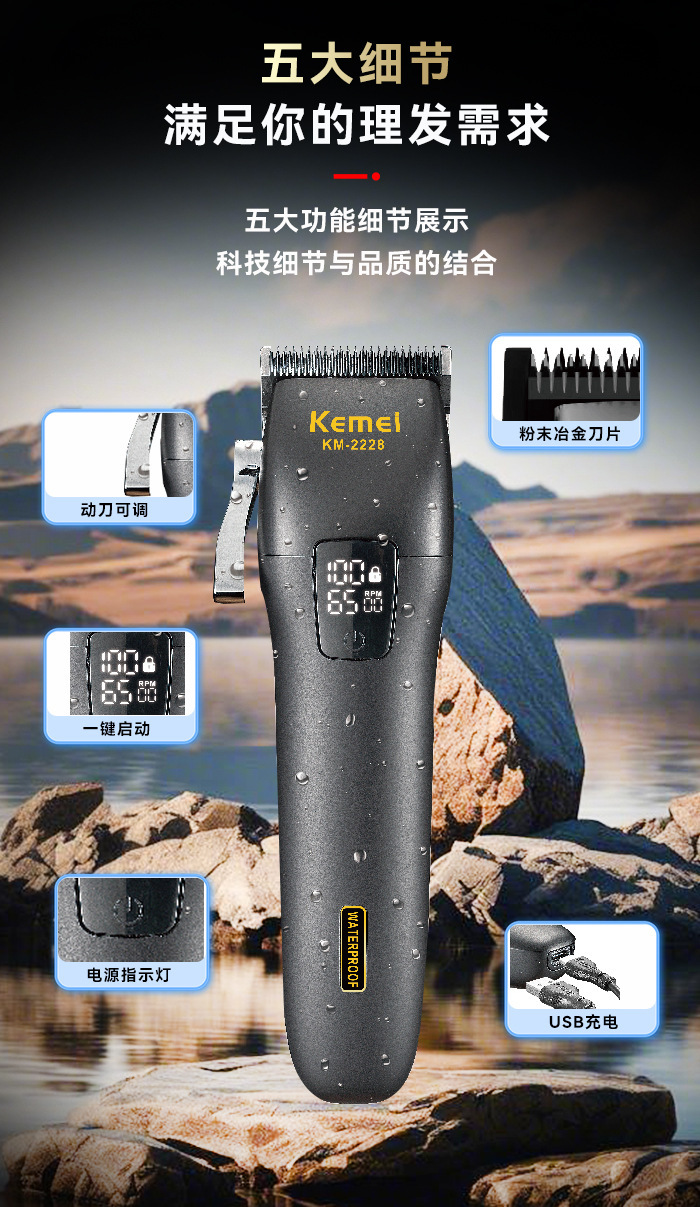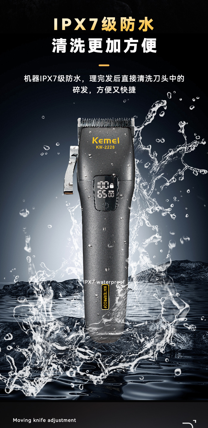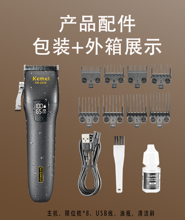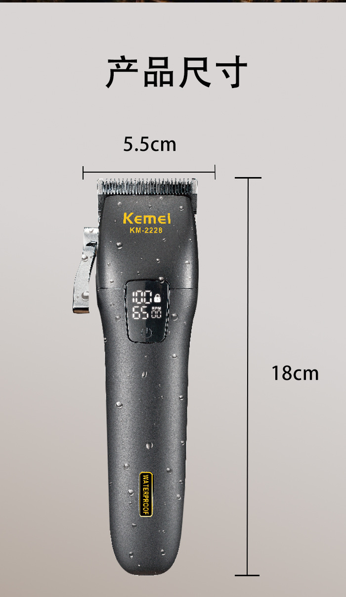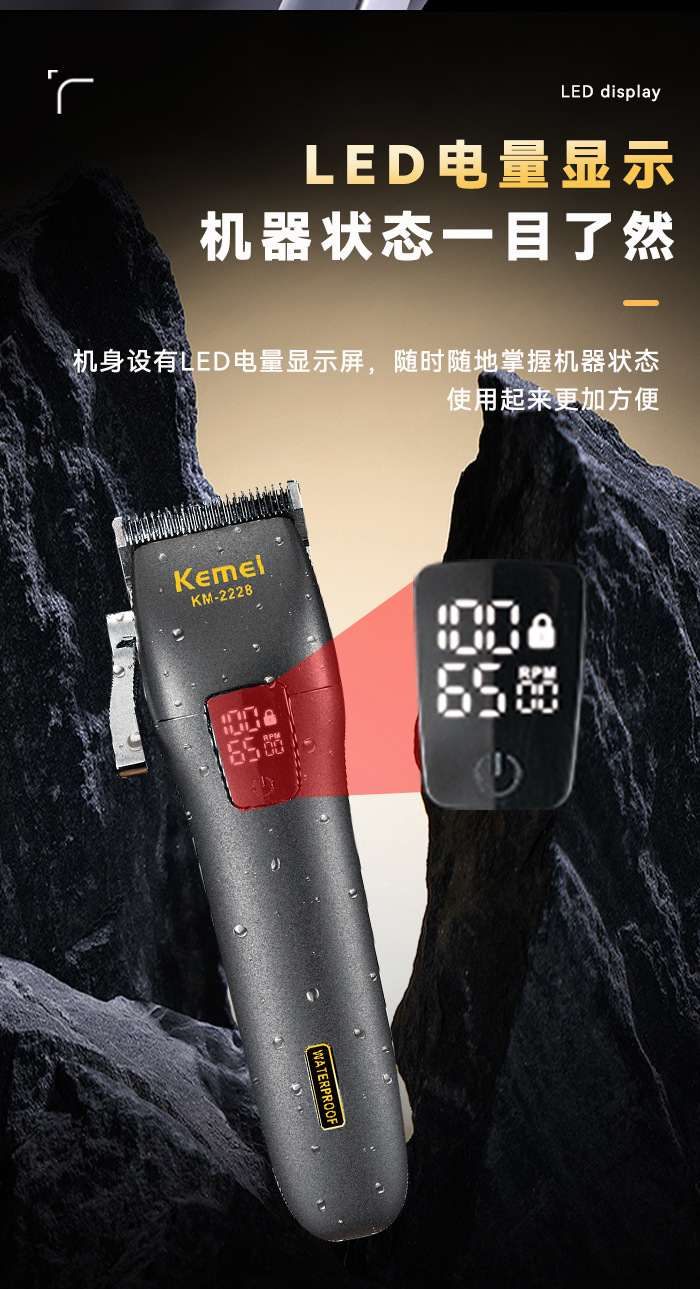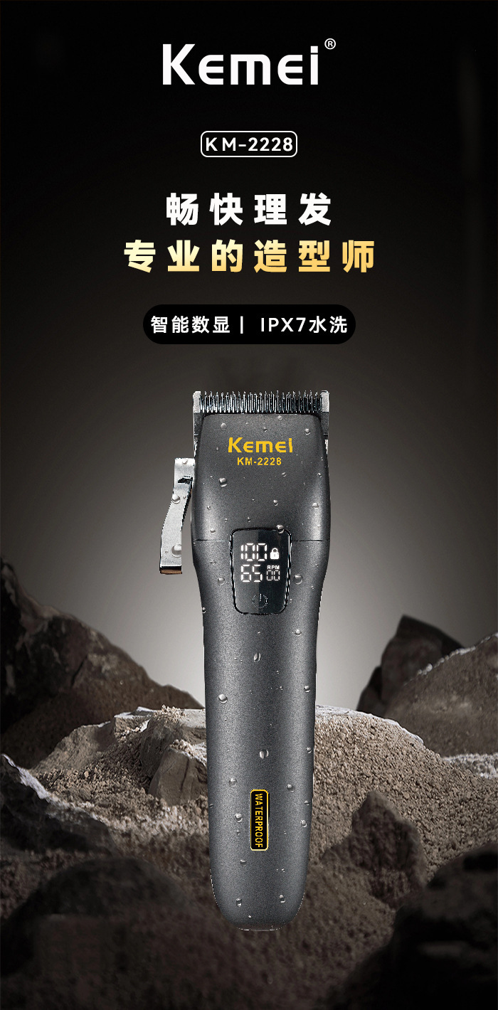 商品名称:科美KM-2228智能数显全身水洗理发器理发雕刻推子发廊专业电推剪