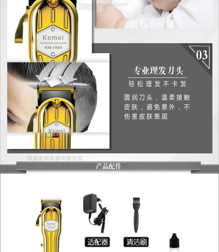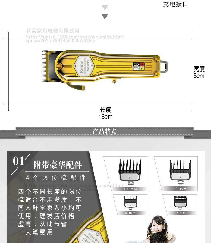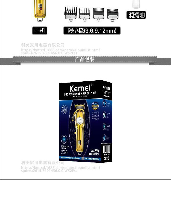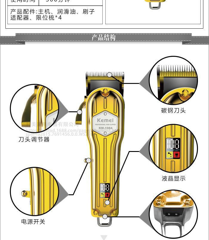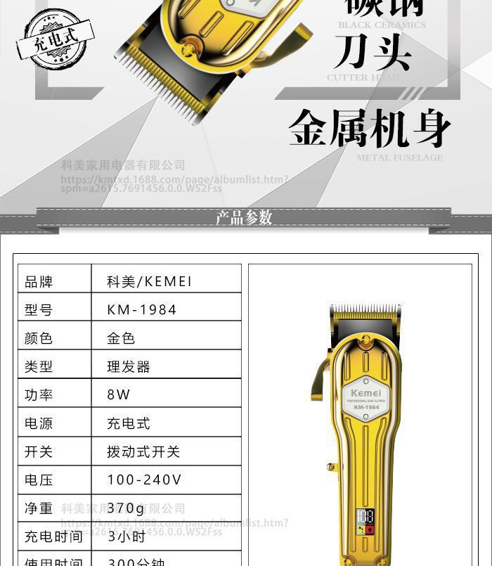 商品名称:kemei/科美理发器KM-1984全身金属可调节刀头家用电推剪发廊专用