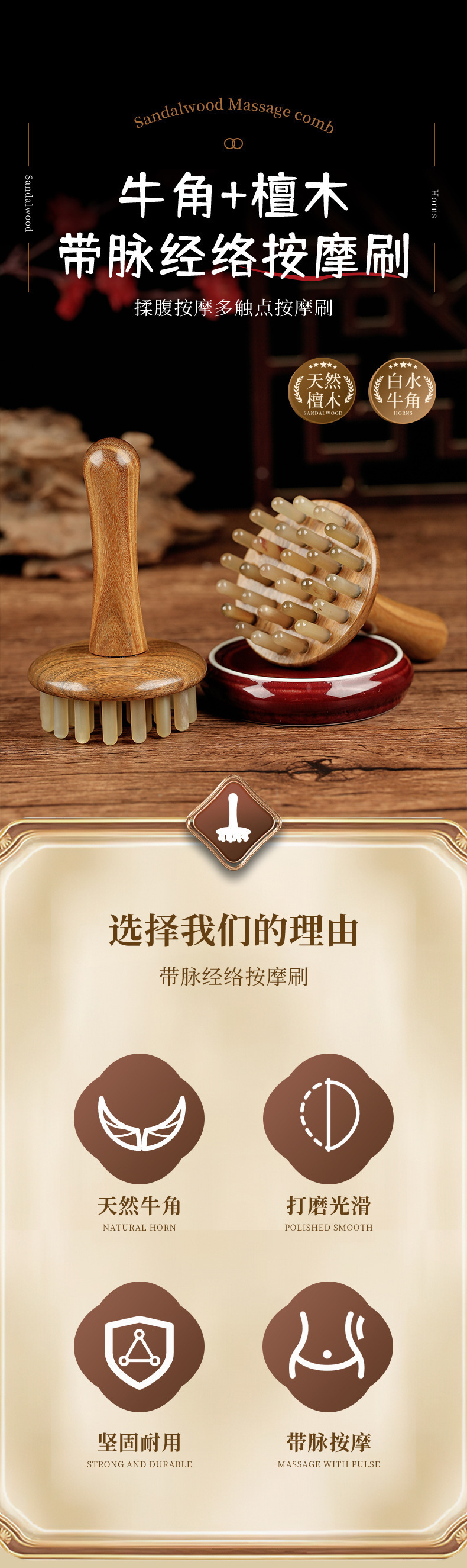 牛角带脉经络刷绿檀按摩刷肚子神器揉腹疏通腿部刮痧全身通用批发