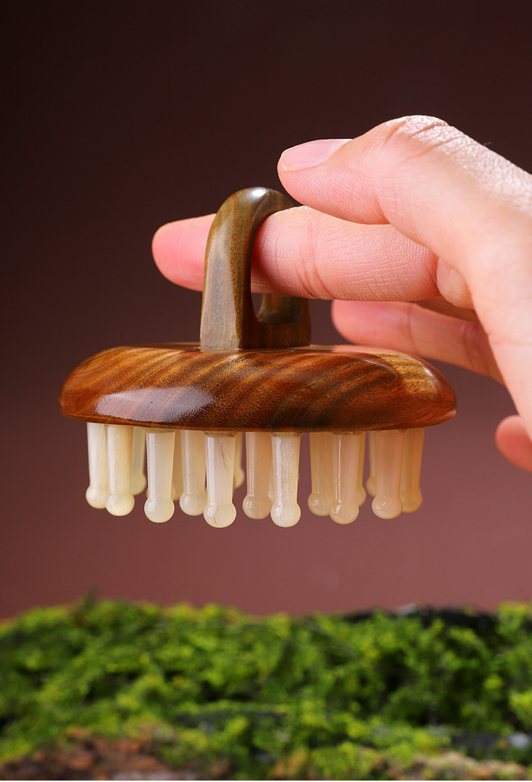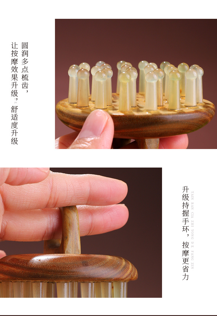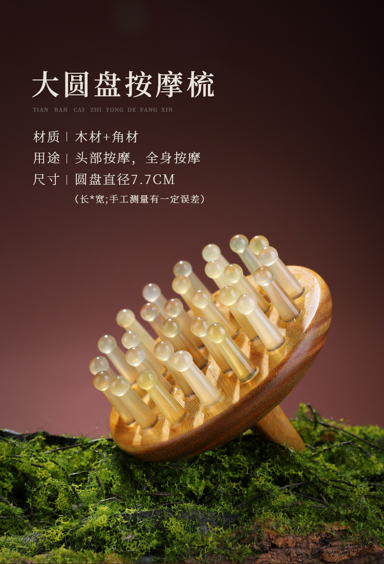 厂家直销指环高贵羊角按摩梳头皮家用女檀木天然头部经络圆盘