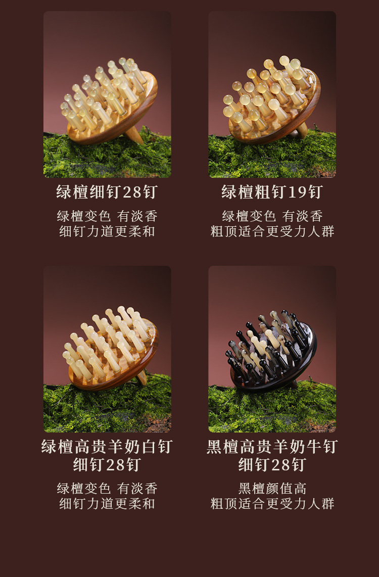 商品名称:厂家直销指环高贵羊角按摩梳头皮家用女檀木天然头部经络圆盘