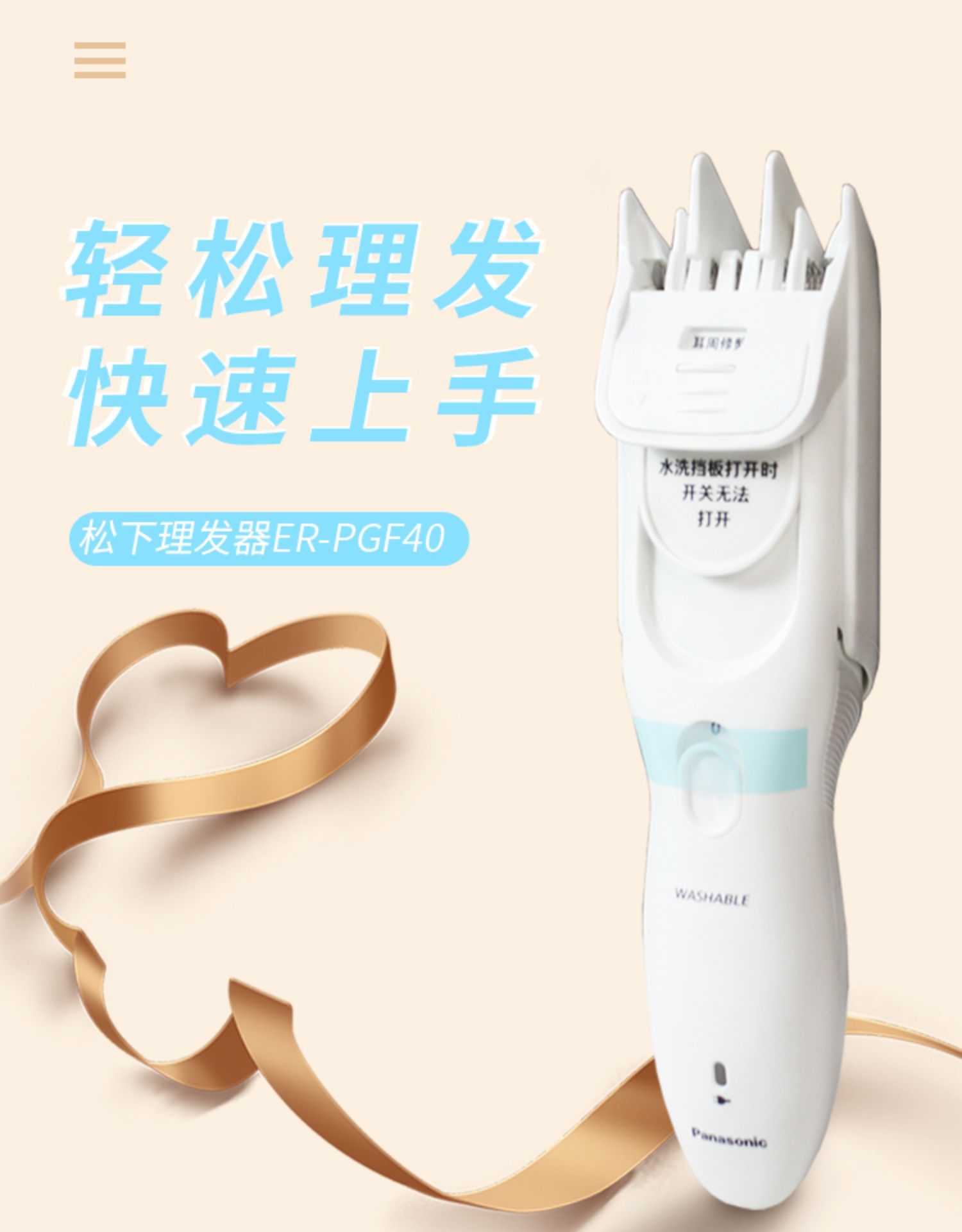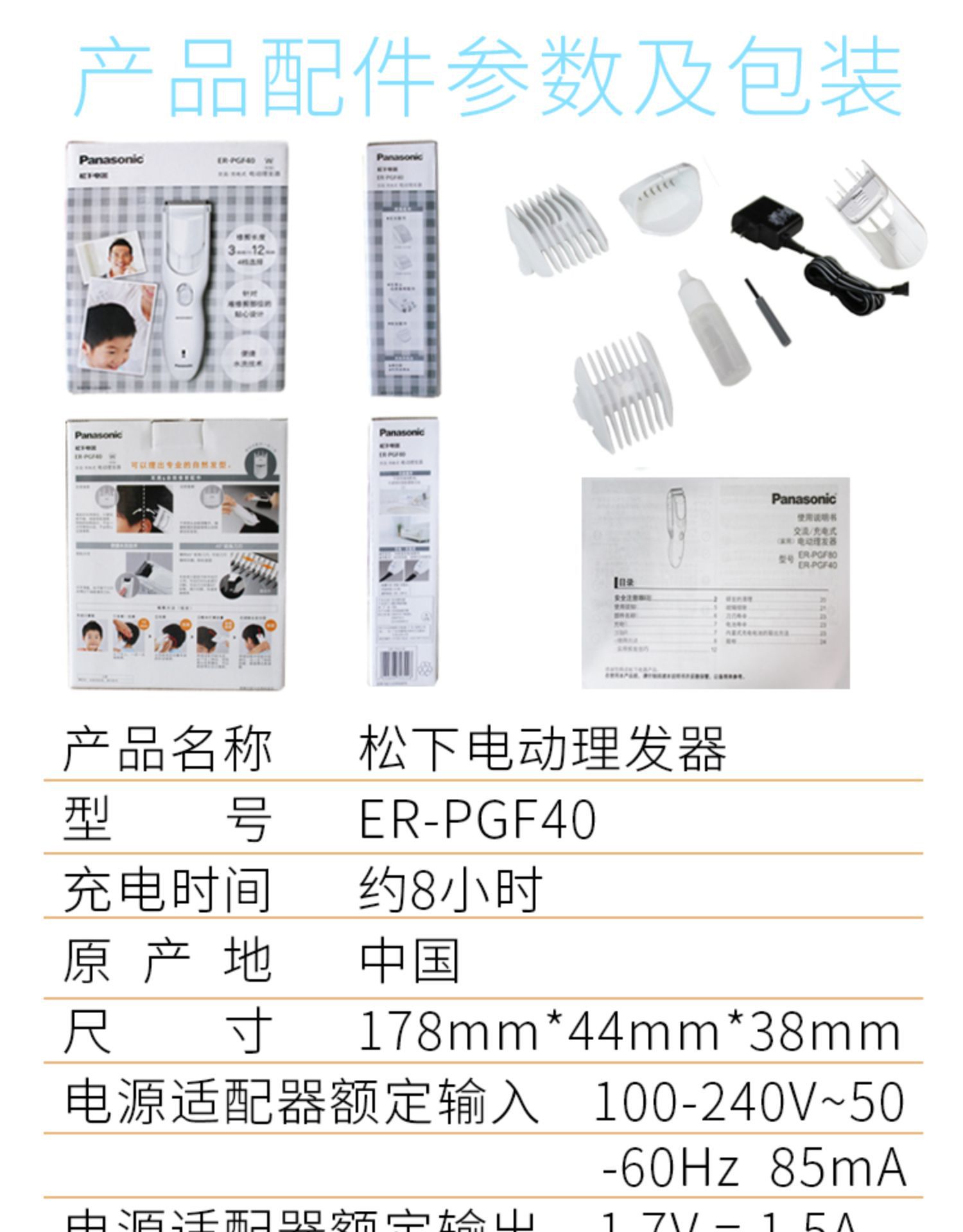 商品名称:松下电动理发器ER-CA35/PGF40 家用电推子推剪全身水洗儿童婴幼儿