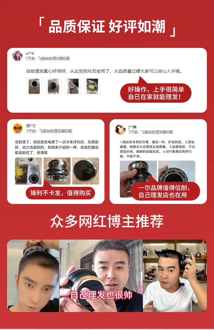 商品名称:德国飞碟全自动自助理发器自己剪男士寸头多功能懒人光头专用神器