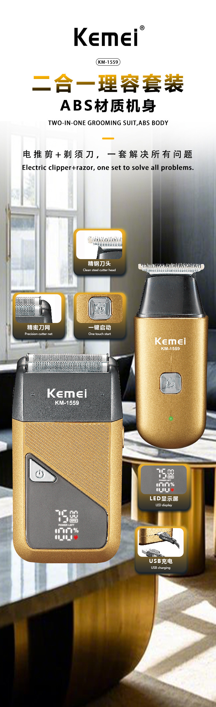 科美电动理发剃须套装 便携式USB快充小型往复式剃须刀理发器套装