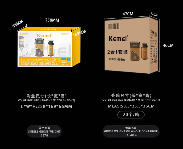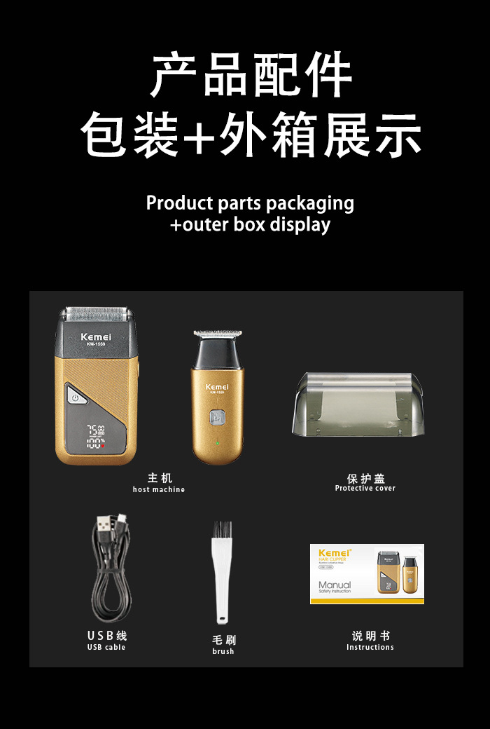 商品名称:科美电动理发剃须套装 便携式USB快充小型往复式剃须刀理发器套装