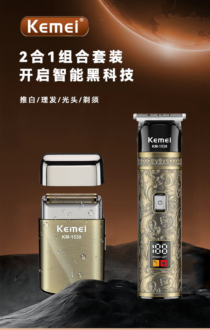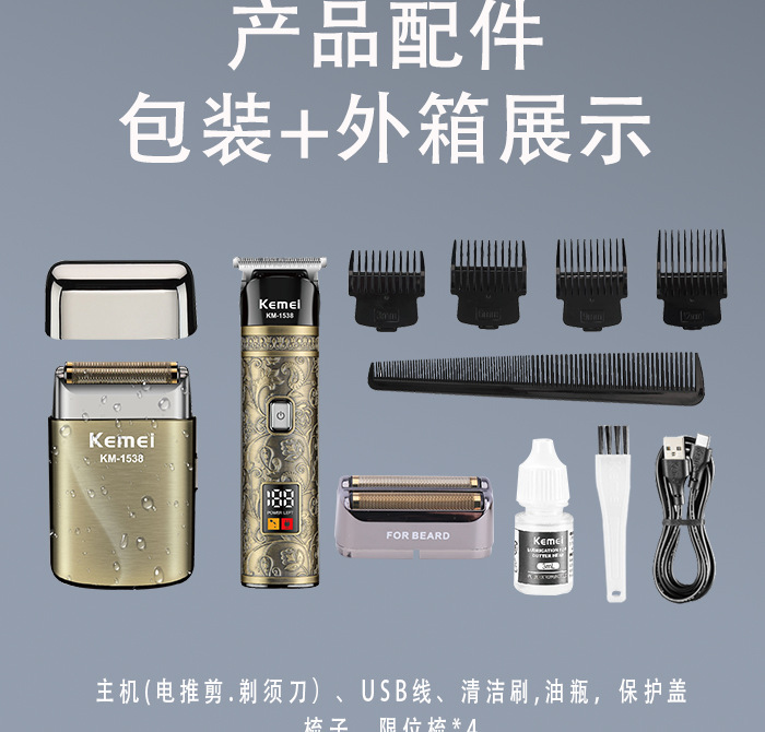 科美电动理发剃须工具套装 多用途智能电推剪往复式剃须刀二件套