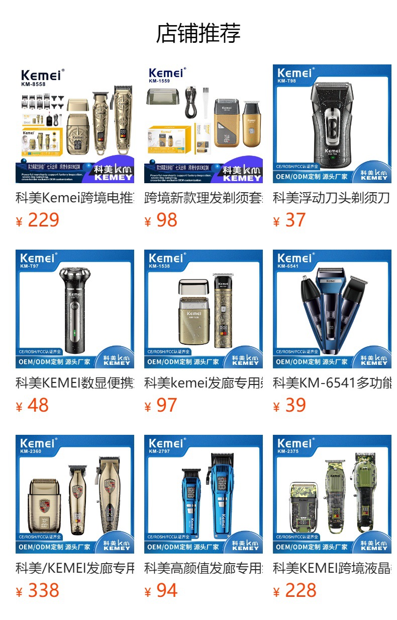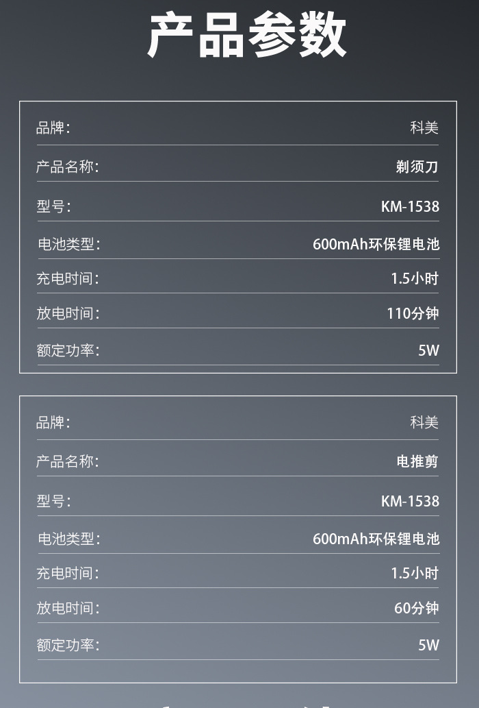 商品名称:科美电动理发剃须工具套装 多用途智能电推剪往复式剃须刀二件套