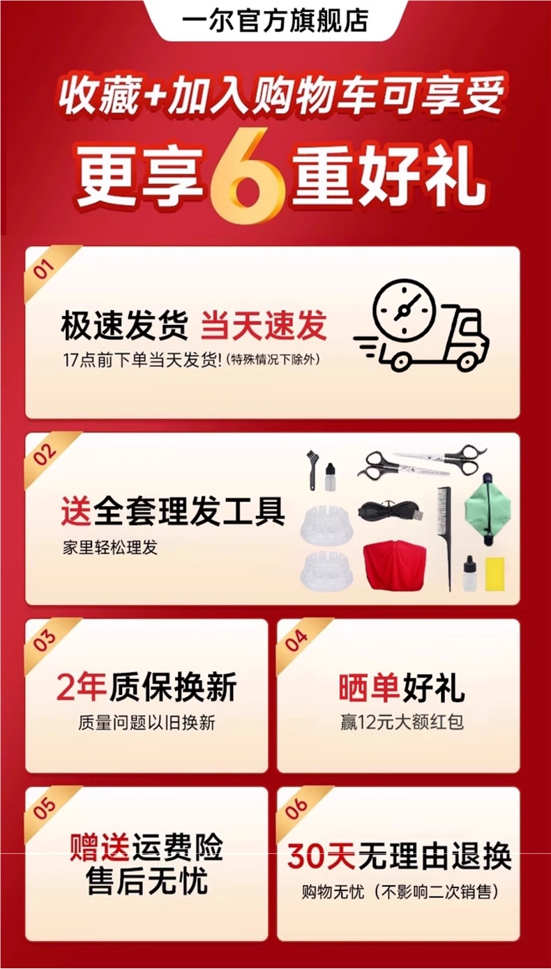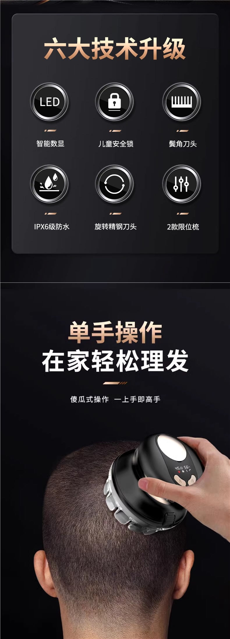 【初代基础款】液晶水洗款+专业电推剪+赠理发8件套