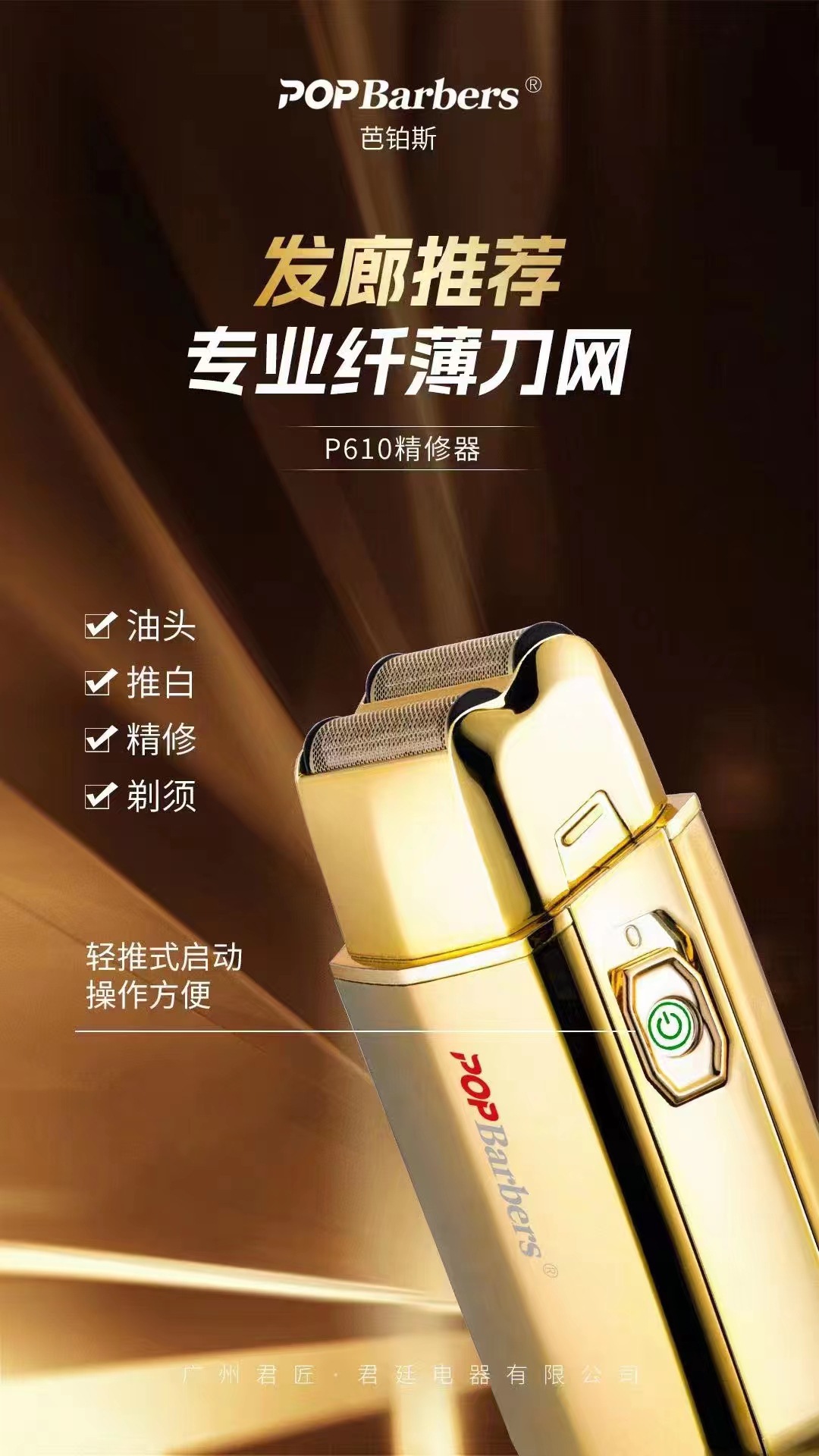 商品名称:芭铂斯P610双色油头光头发廊剃须刀悬动双刀头专业推白理发器批发