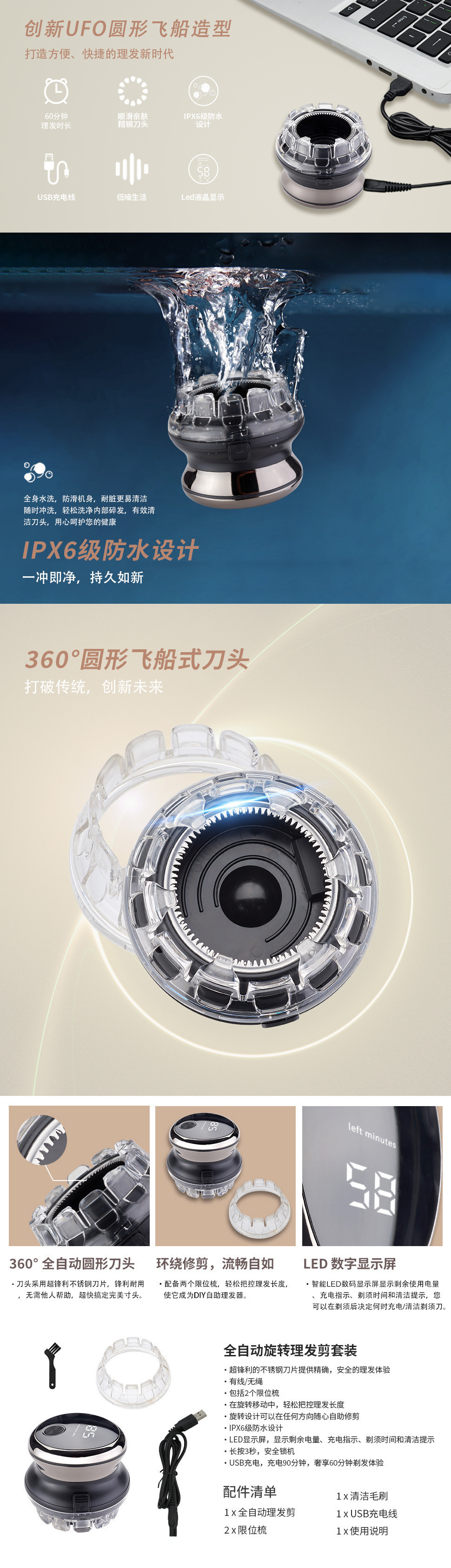 商品名称:全自助飞碟理发自己剪男士光头剃平头寸头家用头发理发器自助