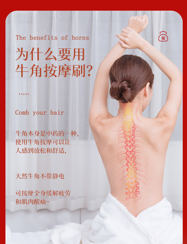 商品名称:牛角带脉经络刷绿檀按摩刷肚子揉腹疏通腿部刮痧全身通用批发