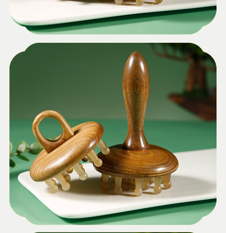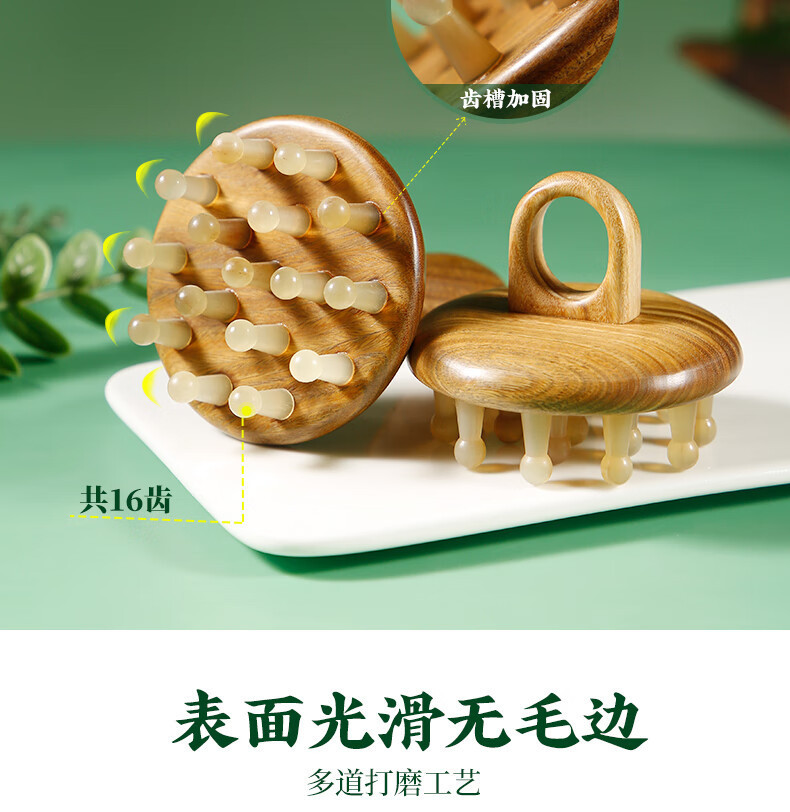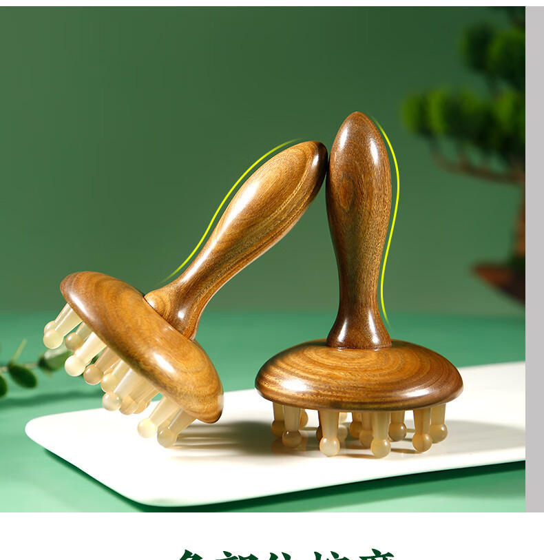 檀木经络刷全身通用肩颈部腹部按摩工具揉肚子刮痧器具指环按摩梳