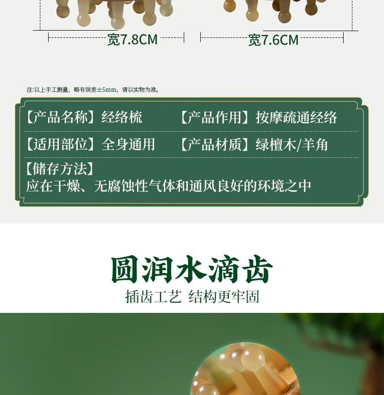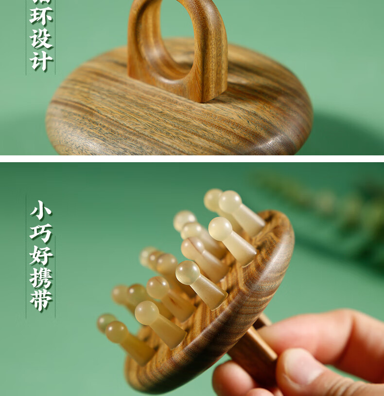 商品名称:檀木经络刷全身通用肩颈部腹部按摩工具揉肚子刮痧器具指环按摩梳