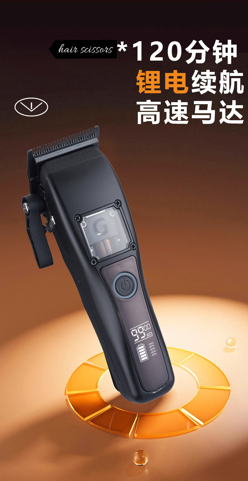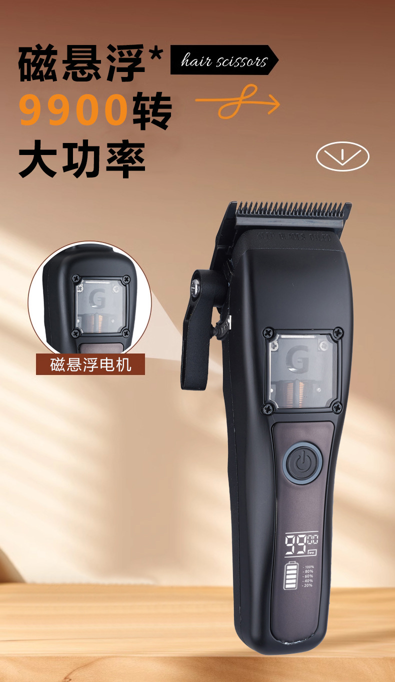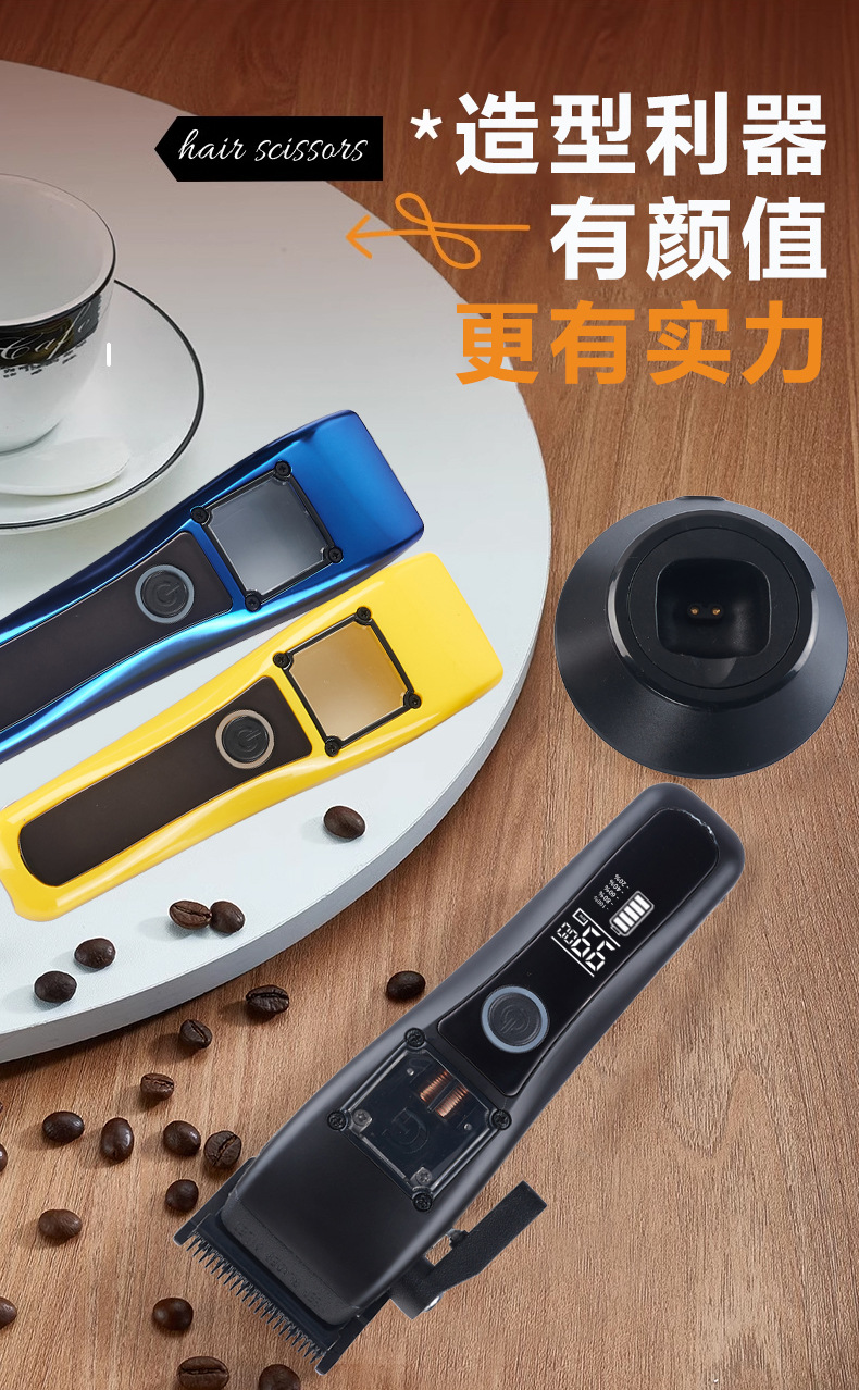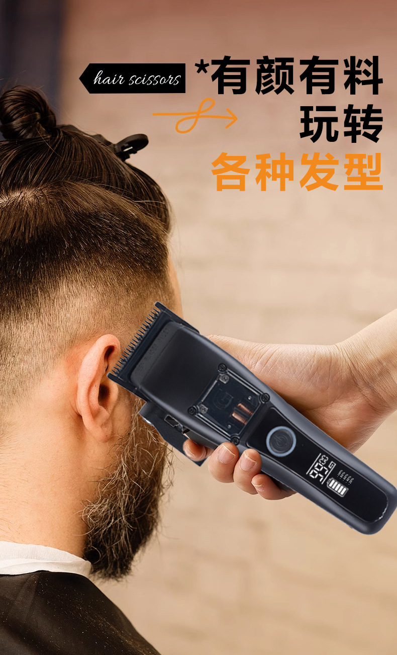 商品名称:无刷雕刻剪理发器磁悬浮电机DLC涂层刀片理发用品无绳液晶电推剪