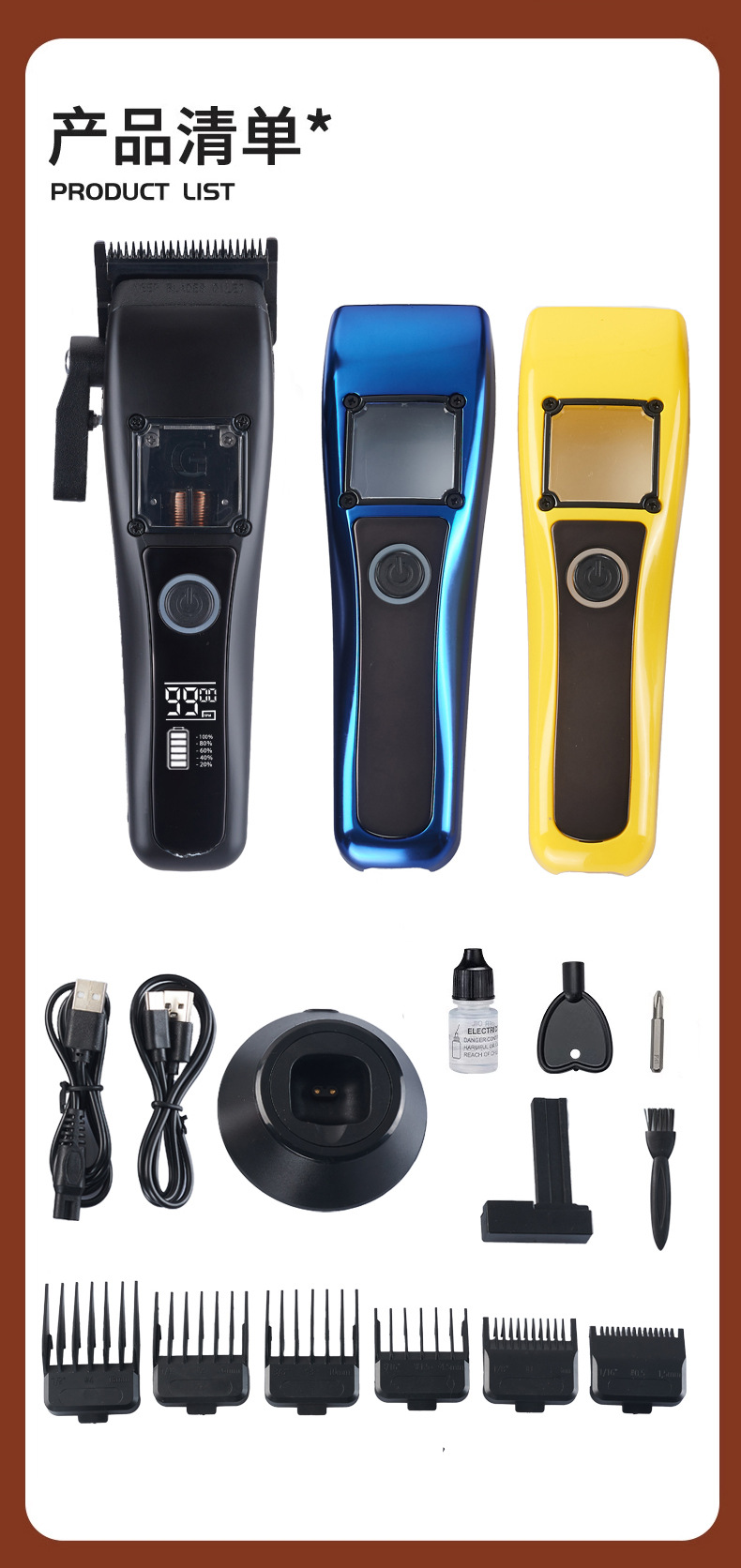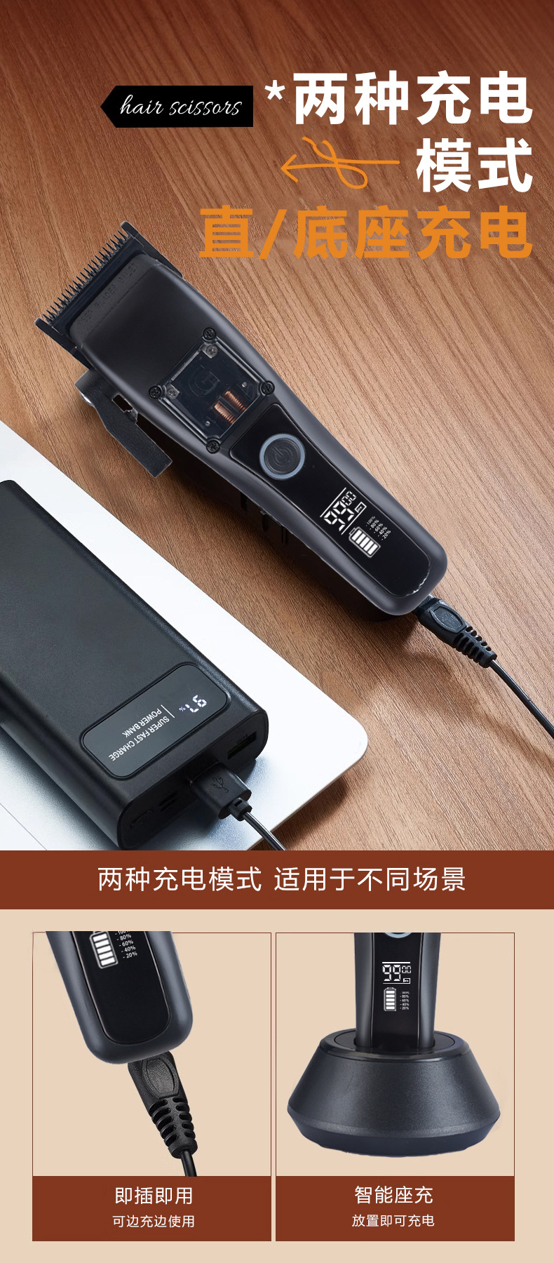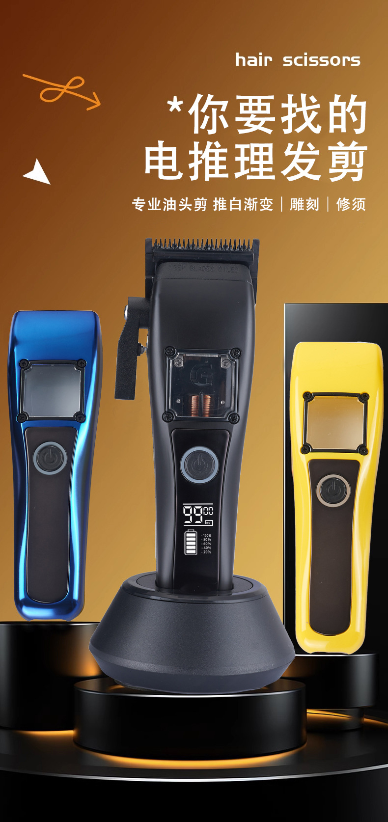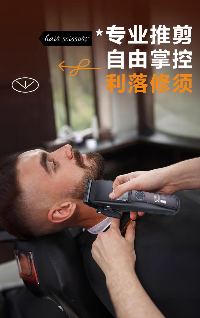 商品名称:无刷雕刻剪理发器磁悬浮电机DLC涂层刀片理发用品无绳液晶电推剪