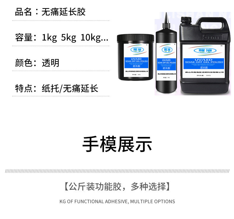 商品名称:美甲延长胶无痛光疗胶加固粘钻胶1000g大瓶功能胶美甲店专用甲油