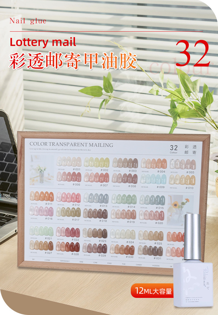 商品名称:悠可32色彩透邮寄甲油胶新款网红流行冰透玉脂裸色打底肌肤色套装