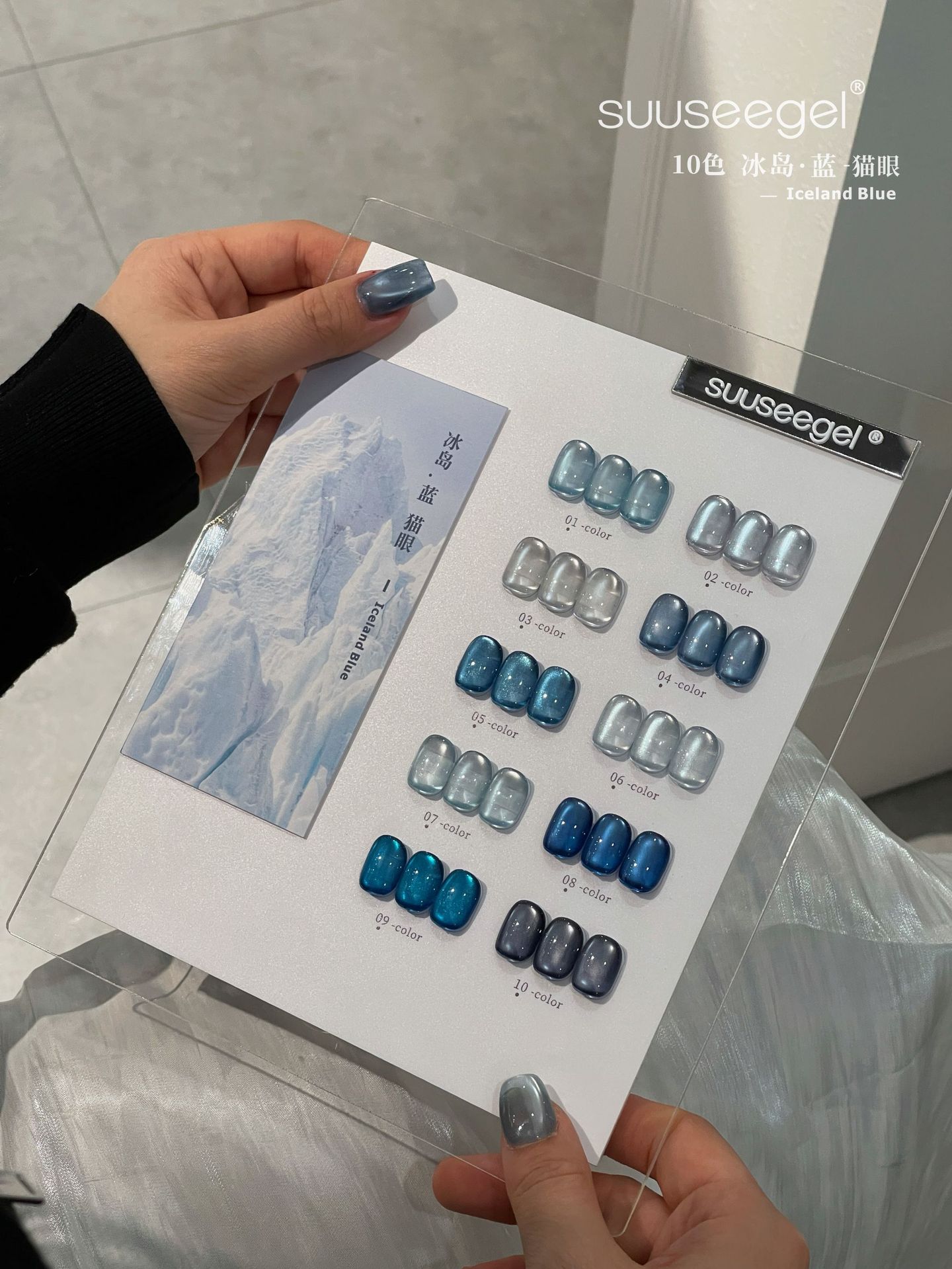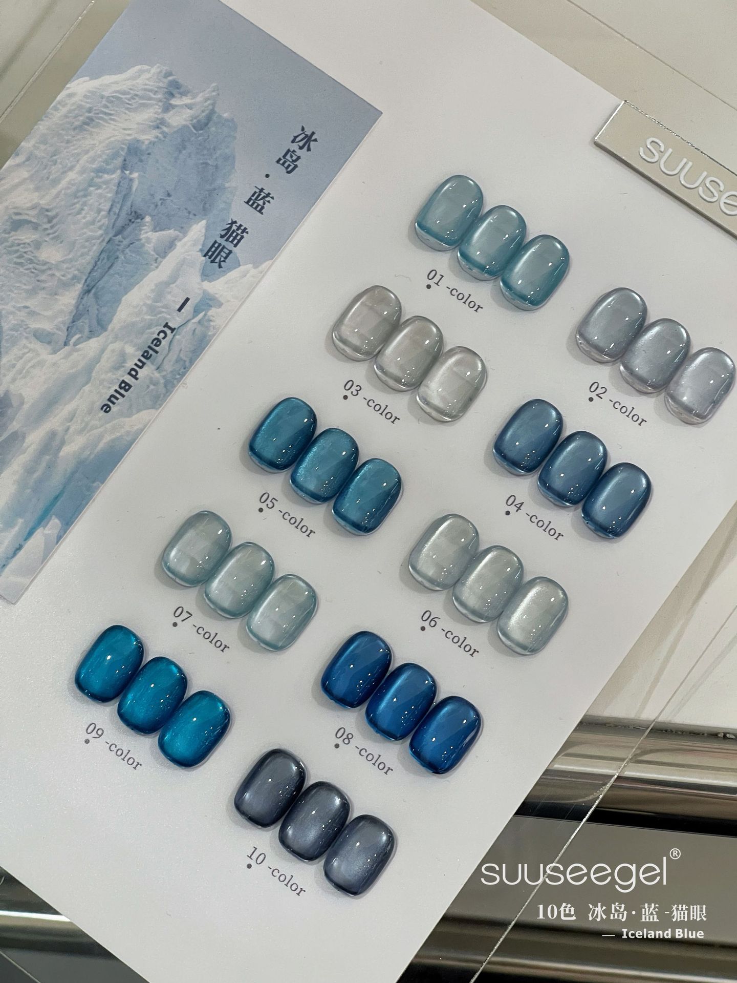 商品名称:束色10色冰岛蓝早春美甲甲油胶2025年新款玻璃珠猫眼蓝矿石小套系