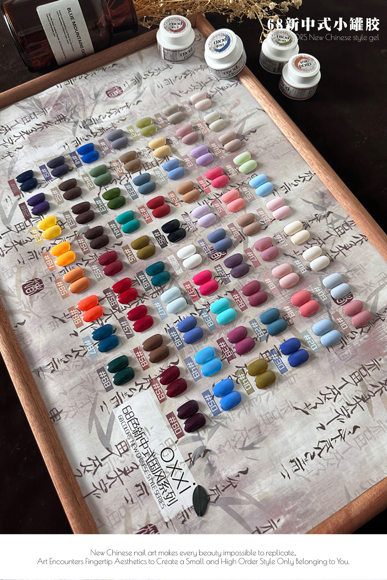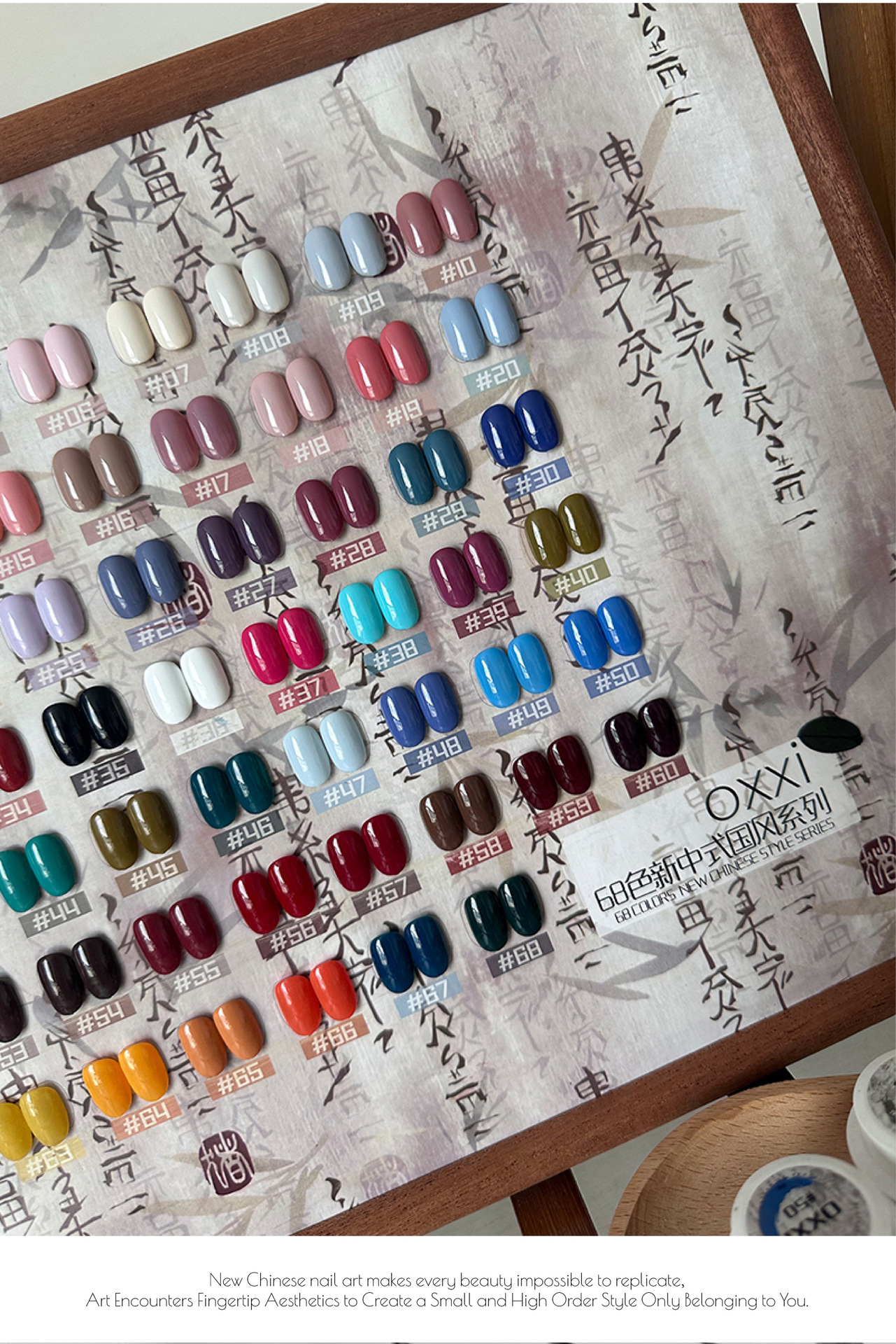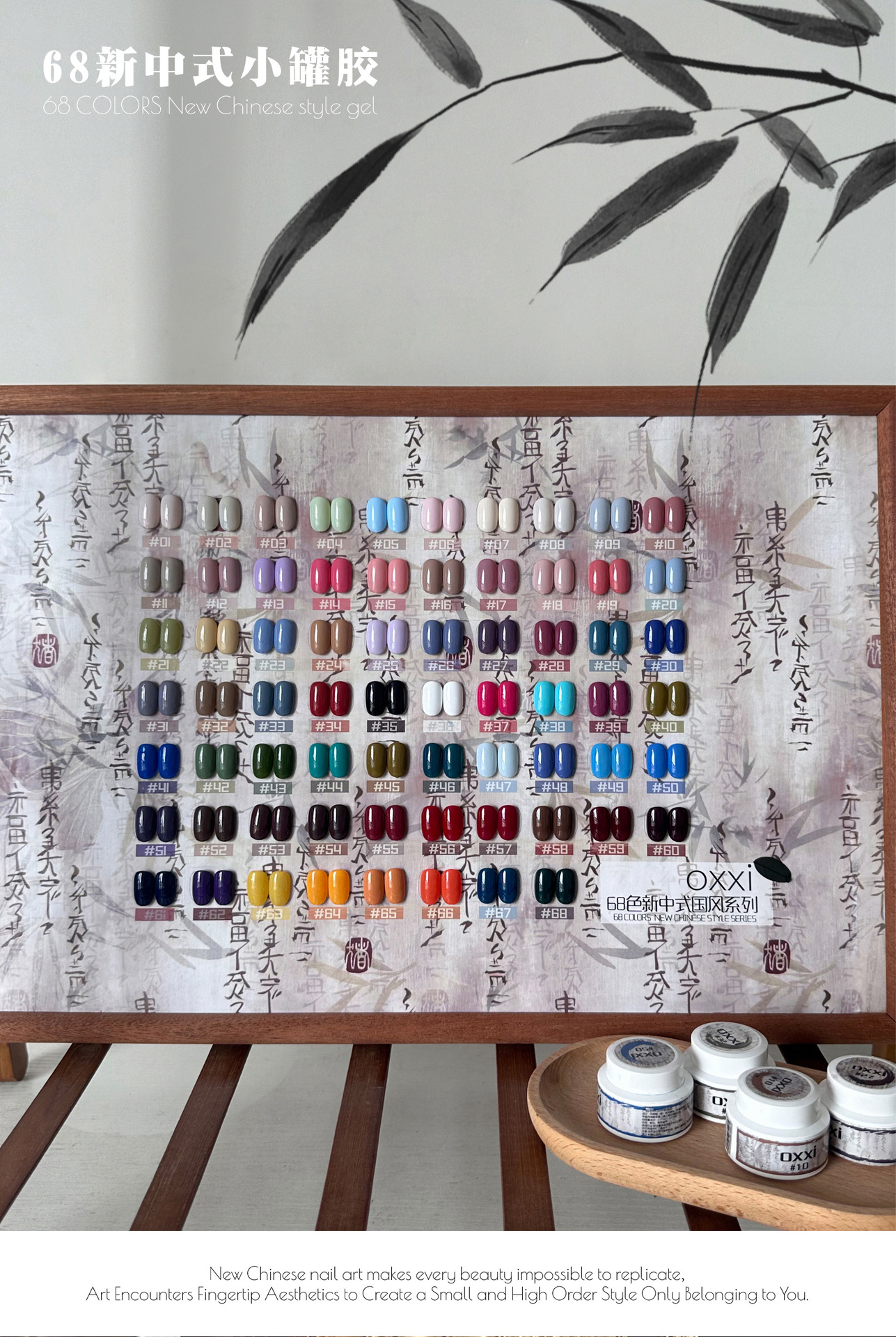 商品名称:【涂好色卡板】68色实色新中式罐胶套装网红国风流行美甲店甲油胶