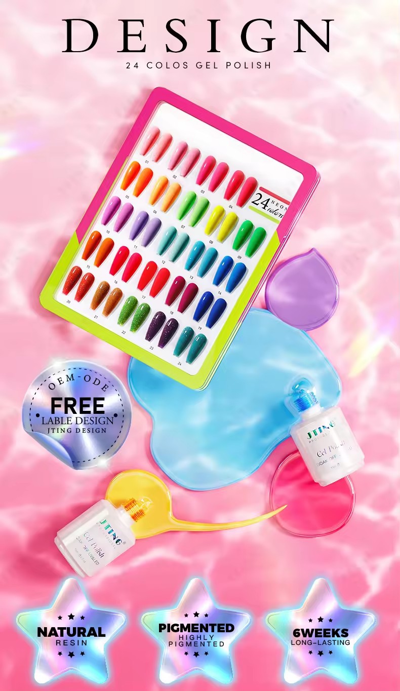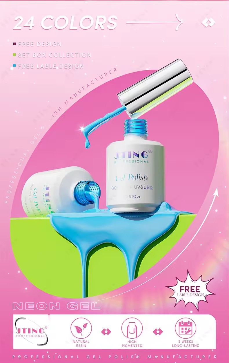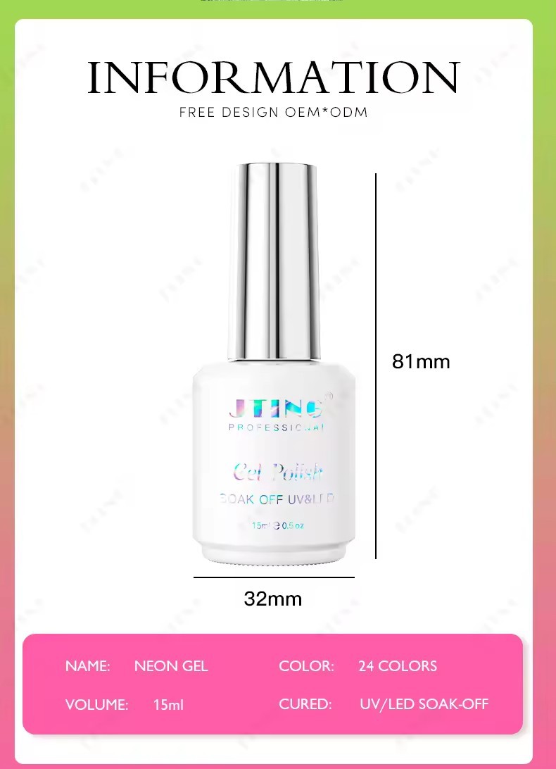 商品名称:JTING景婷24色霓虹色甲油胶套装网红显白流行色美甲店专用指甲胶
