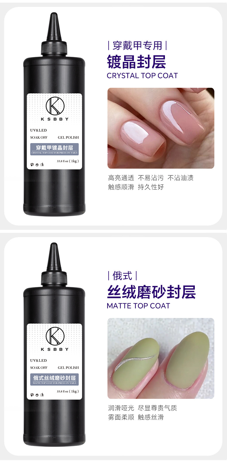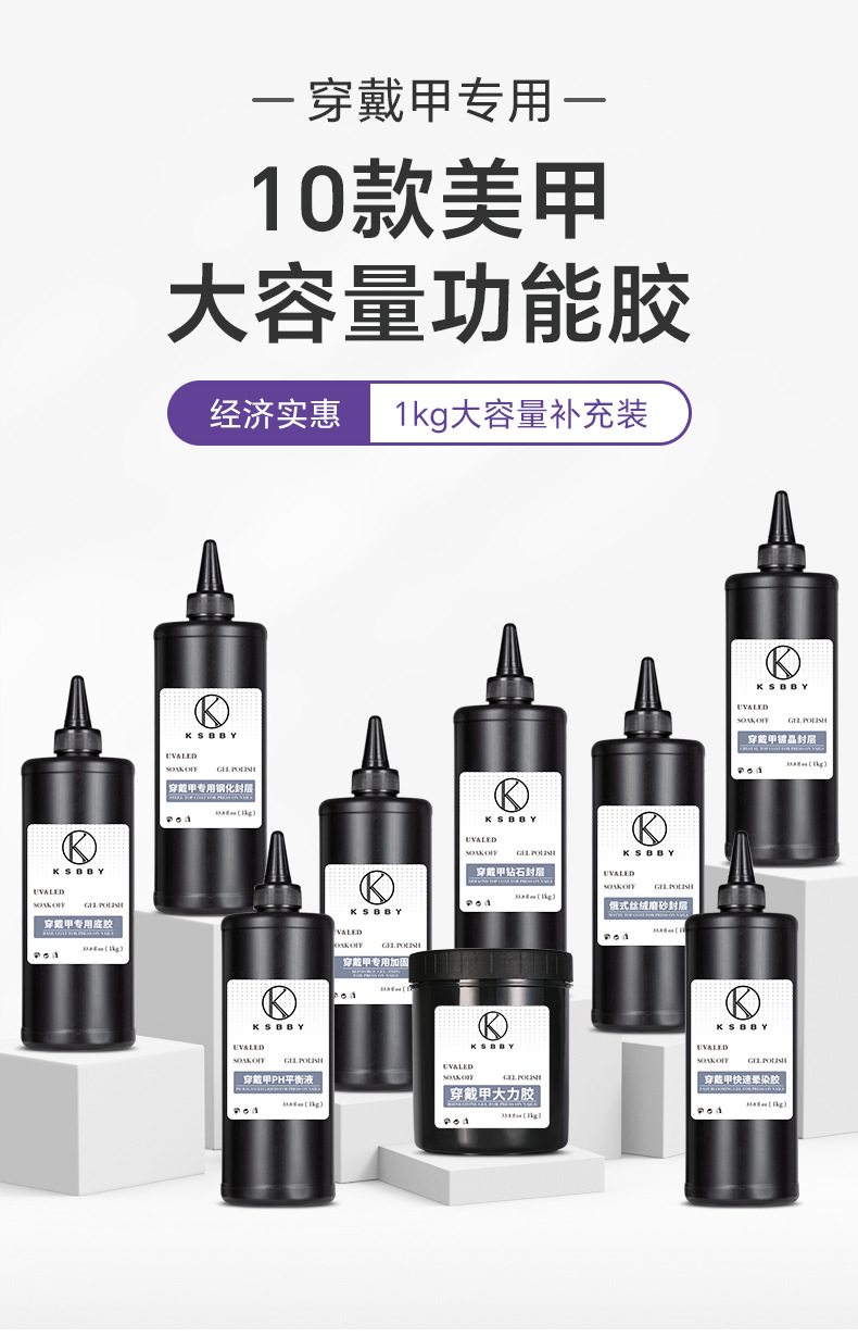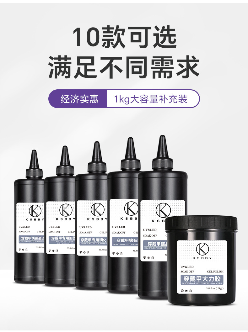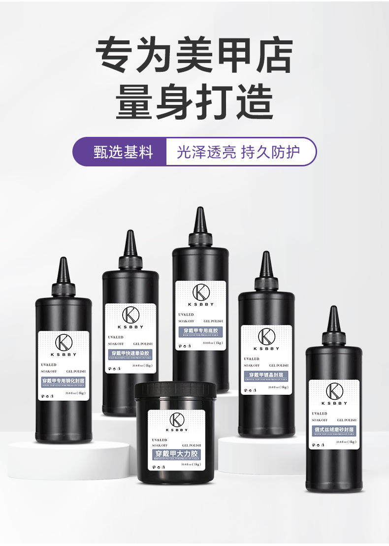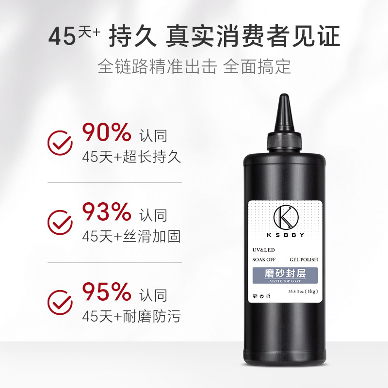 商品名称:KSBBY 俄式丝绒磨砂封层穿戴甲专用哑光雾面顺滑散装功能胶1公斤