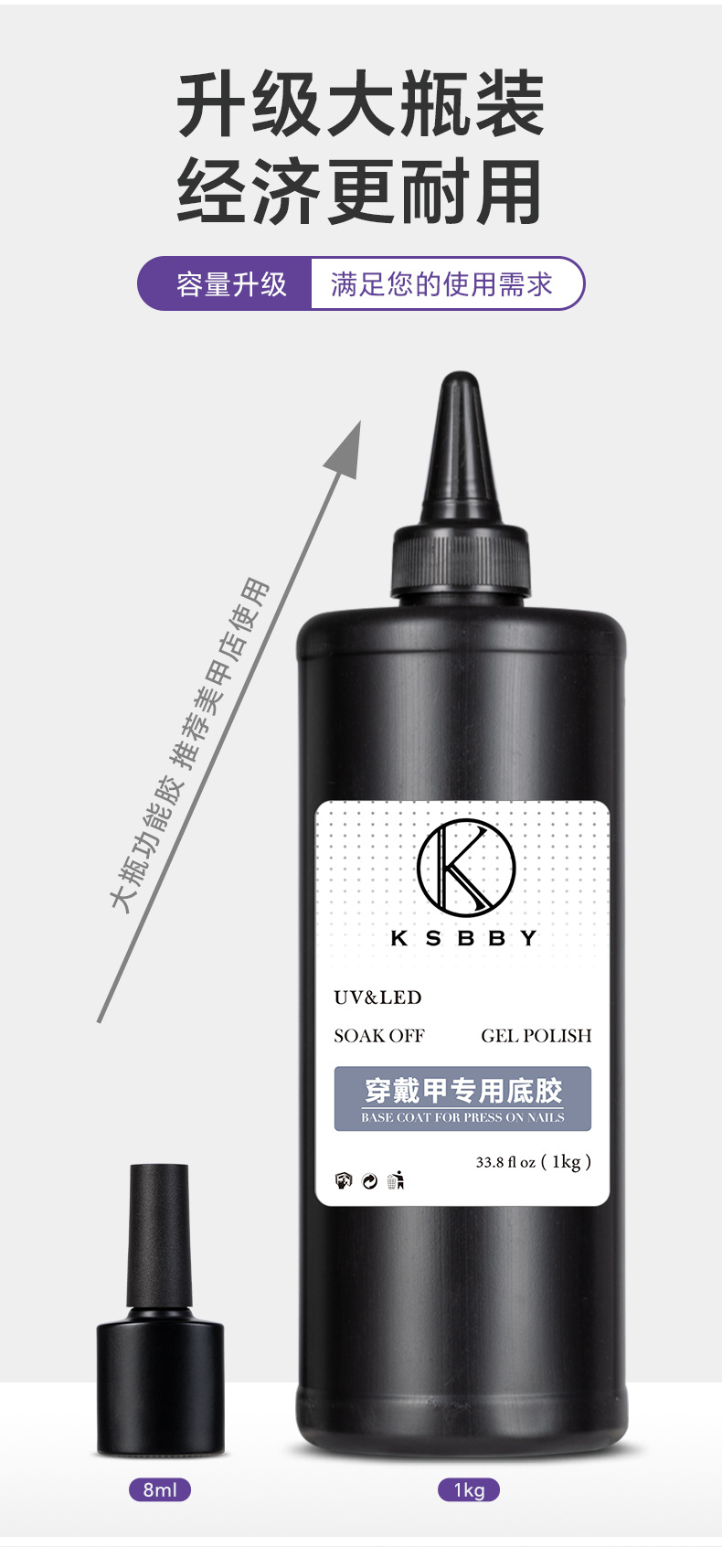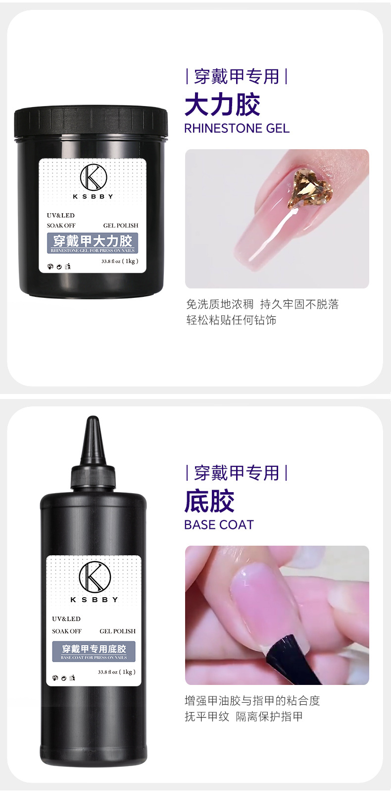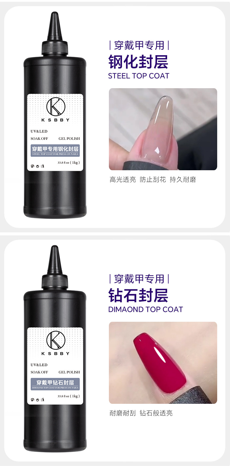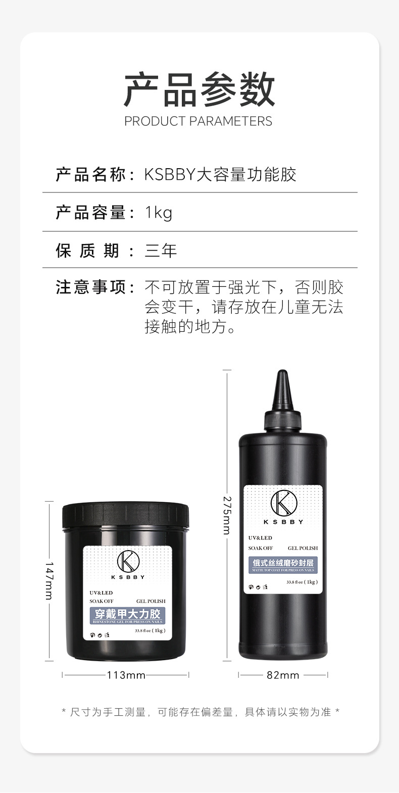 商品名称:KSBBY 俄式丝绒磨砂封层穿戴甲专用哑光雾面顺滑散装功能胶1公斤