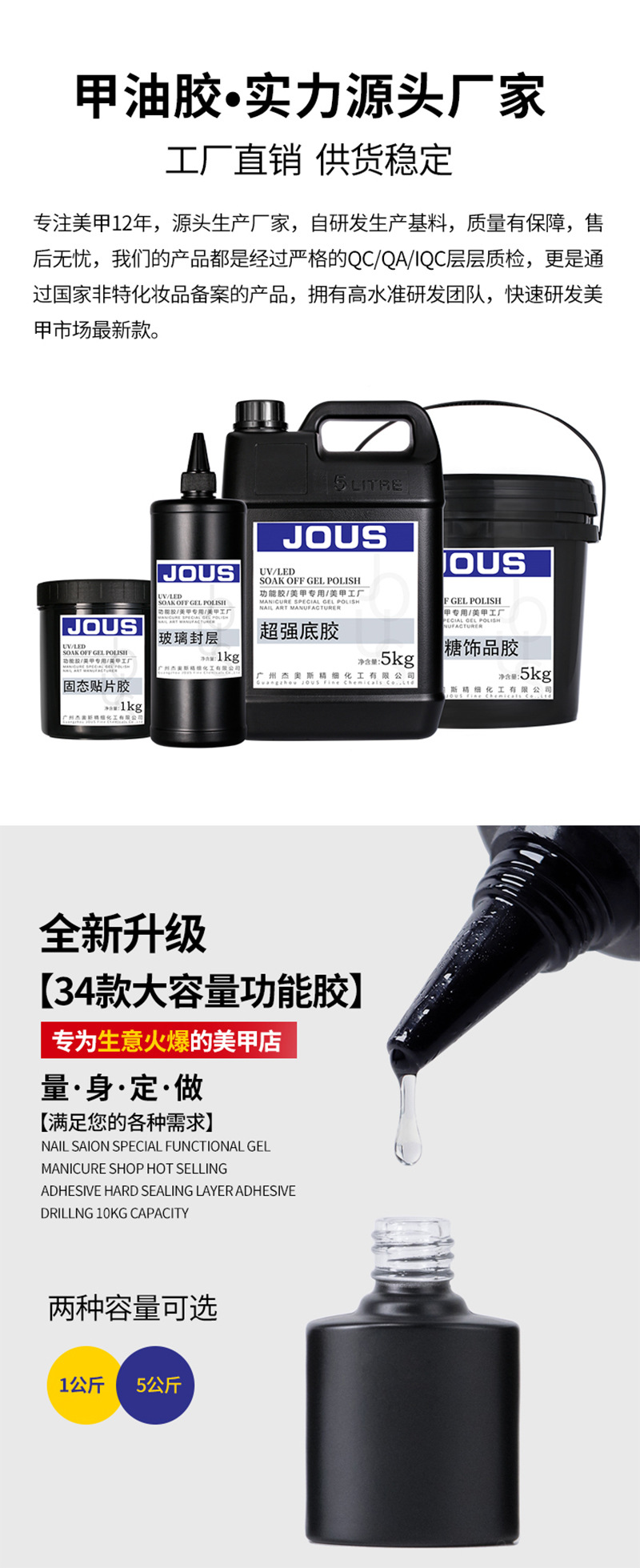商品名称:广州杰奥斯特黑白甲油胶一笔上色美甲店专用大瓶装散装工厂批发