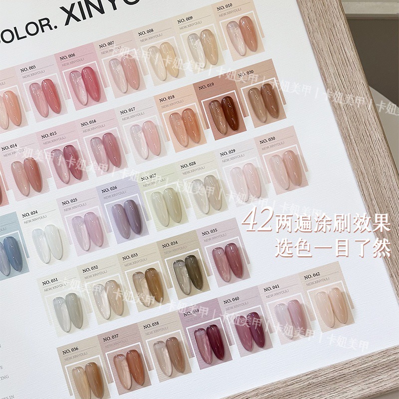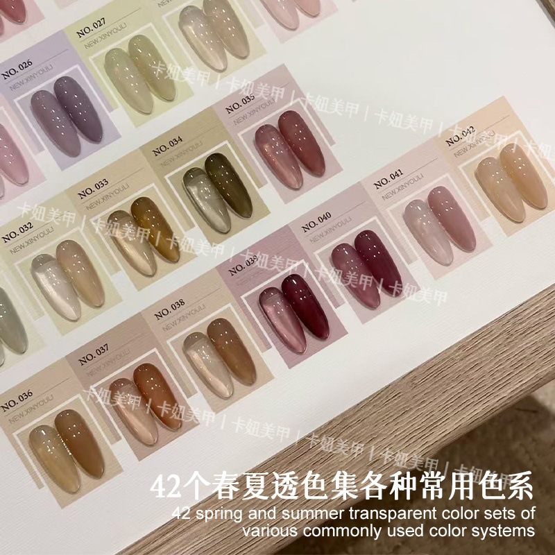 伈柚里25年新款美甲店专用42色蜜桃气泡甲油胶显白玉脂裸透色小套