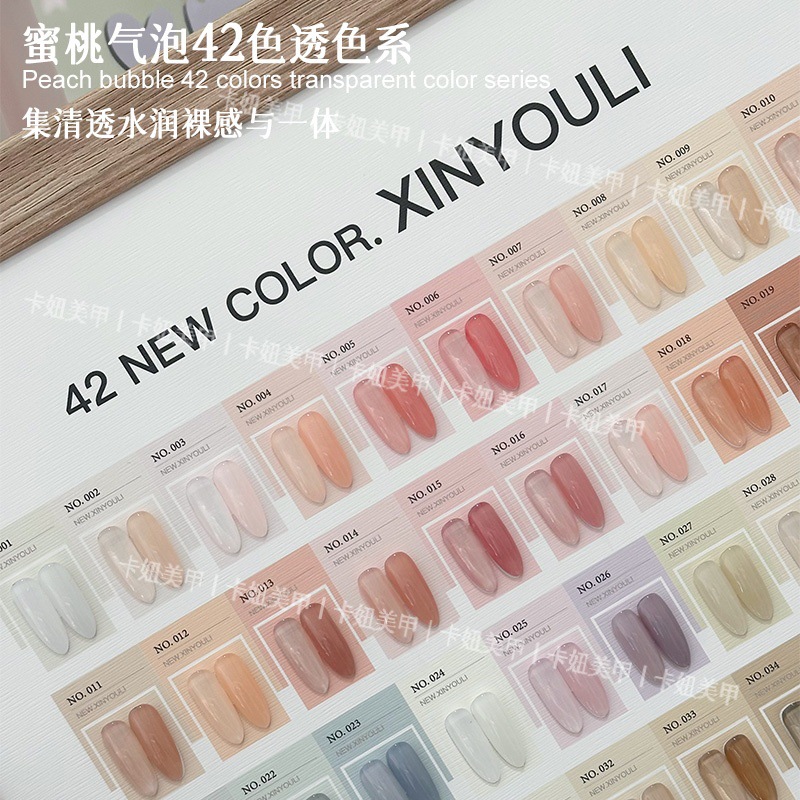 商品名称:伈柚里25年新款美甲店专用42色蜜桃气泡甲油胶显白玉脂裸透色小套