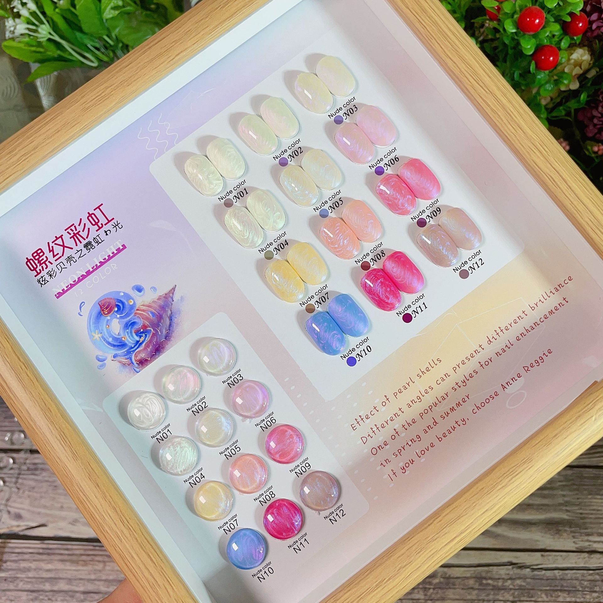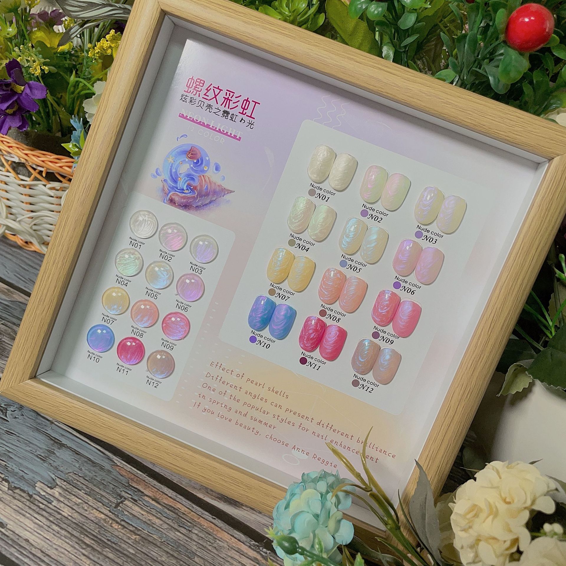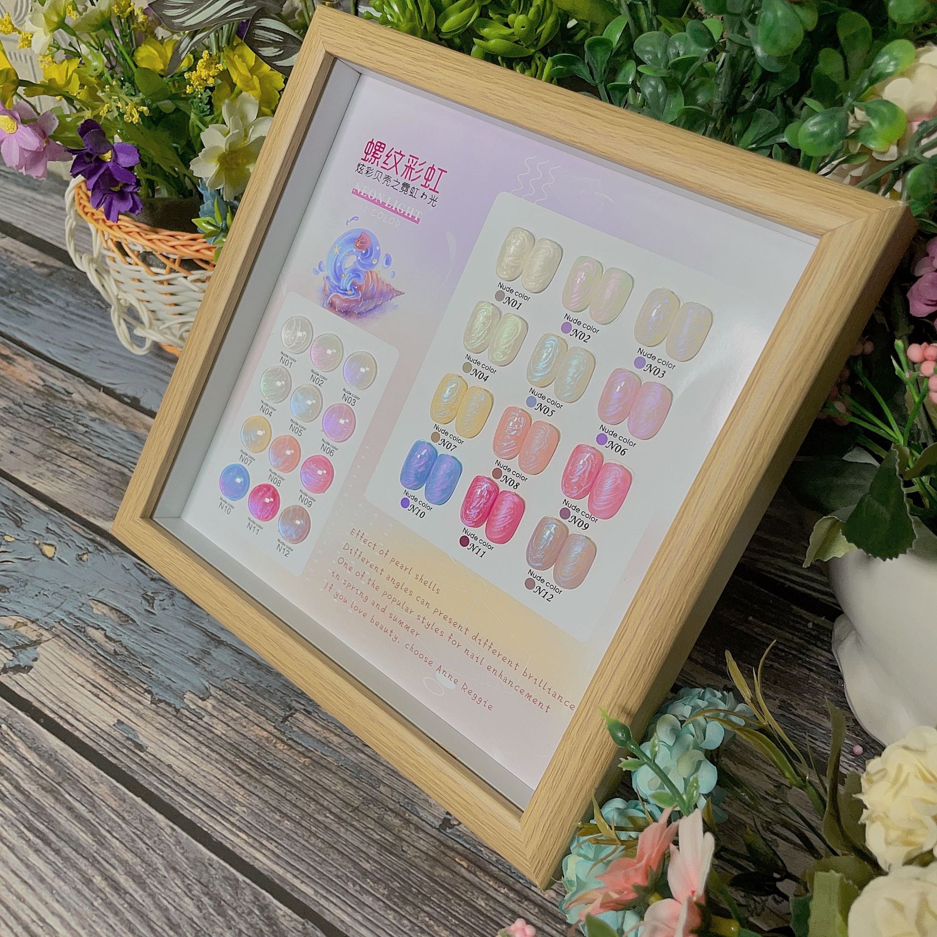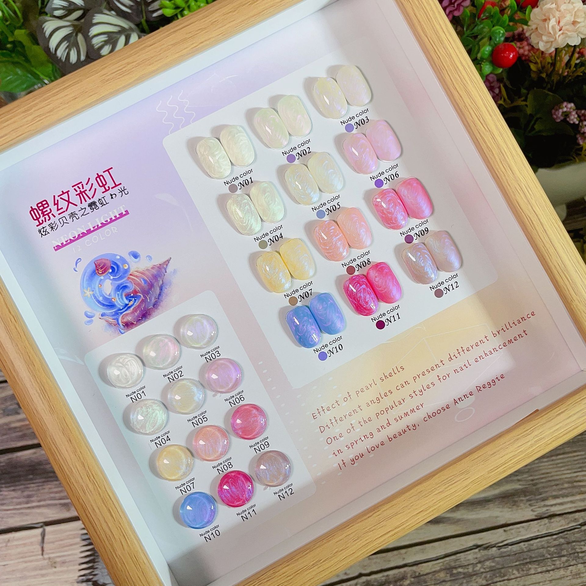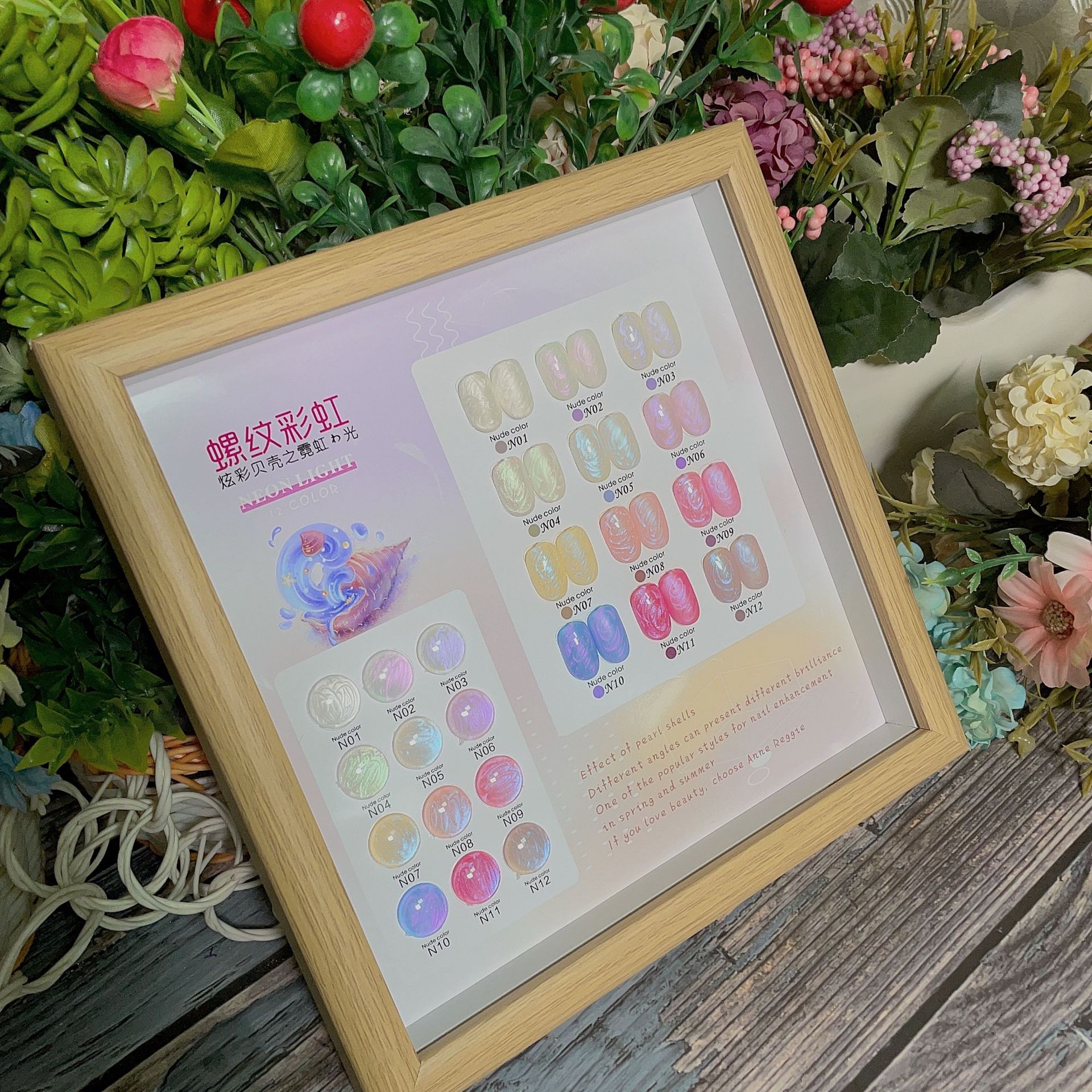 商品名称:12色螺纹彩虹(刷好色板)霓虹独角兽偏光珠光色美甲甲油胶