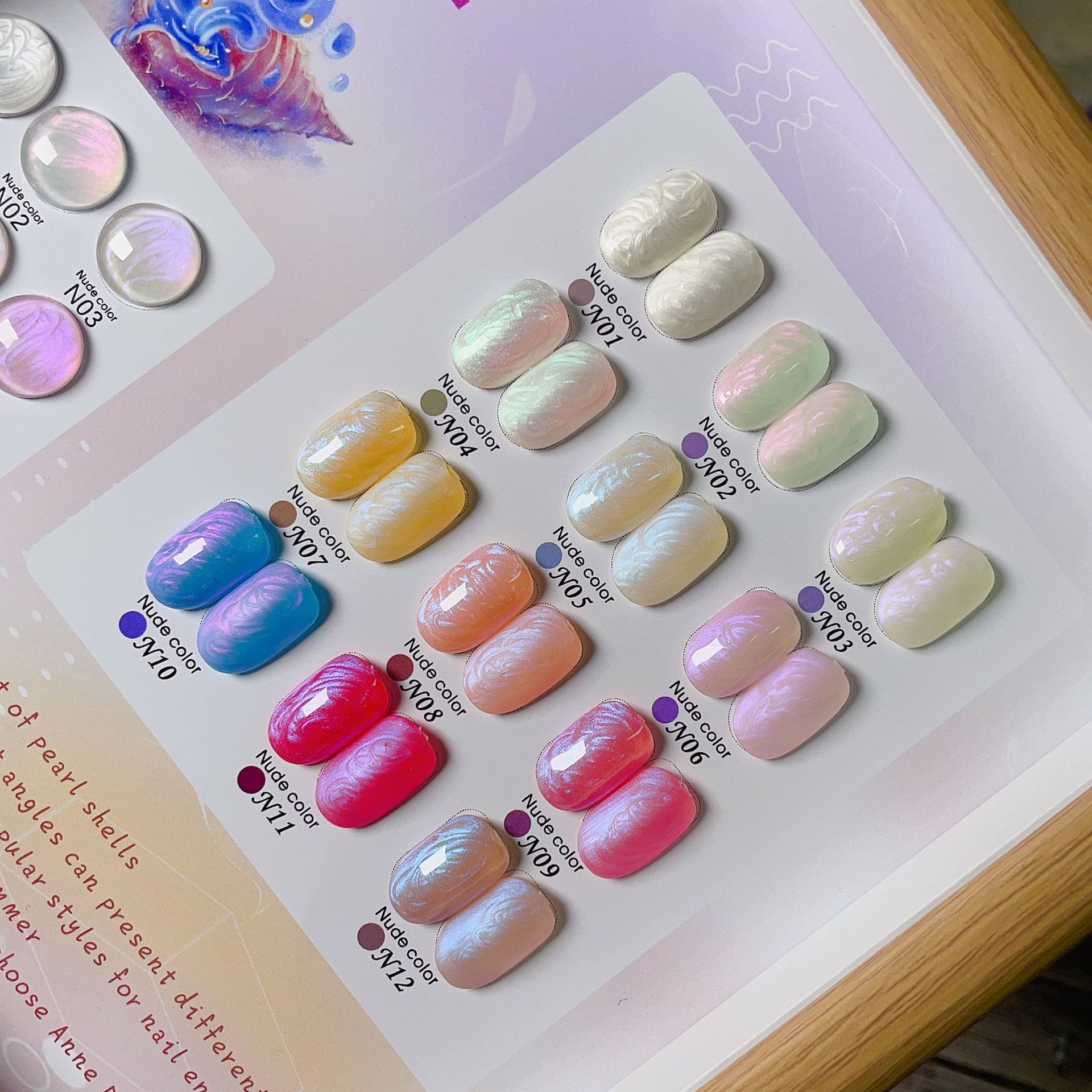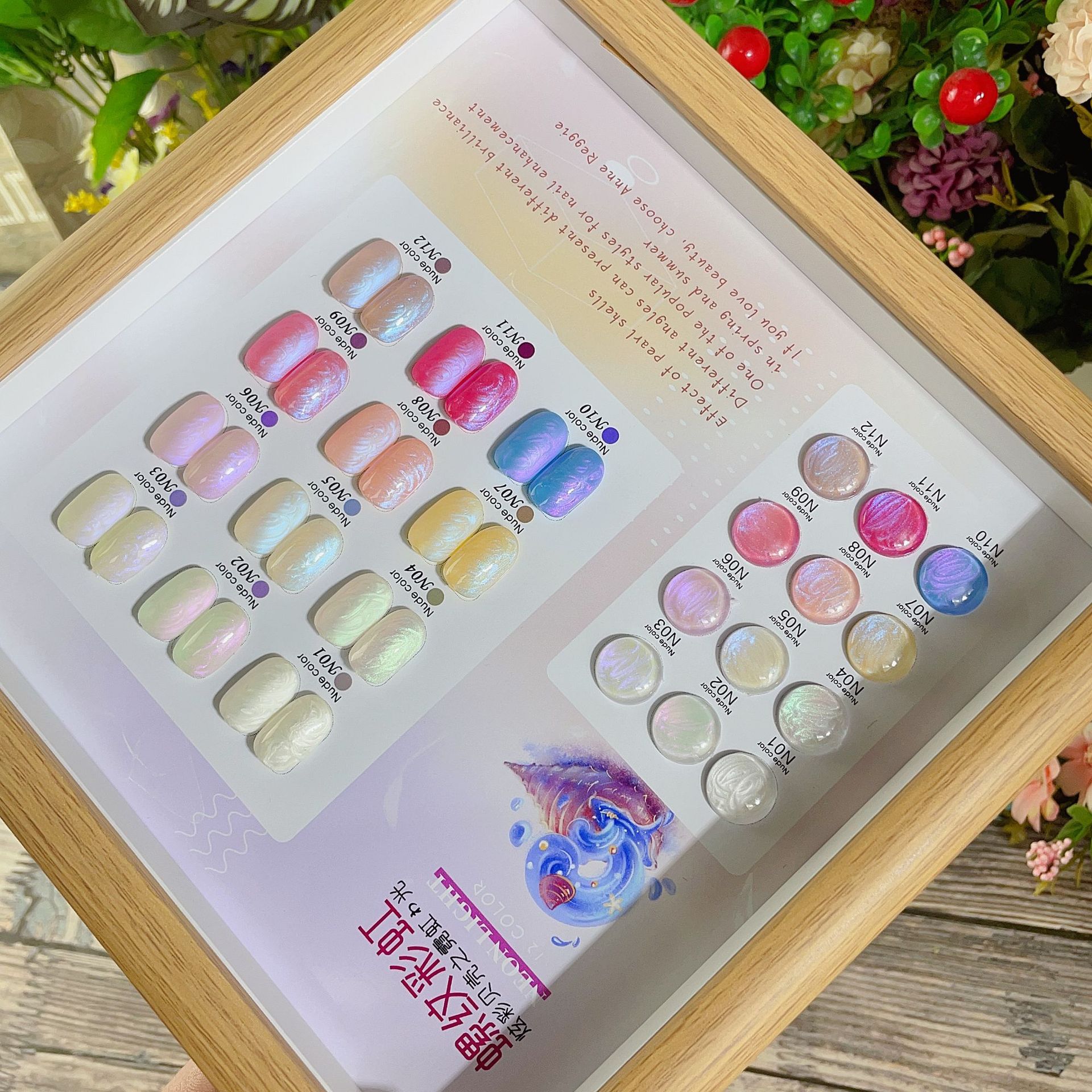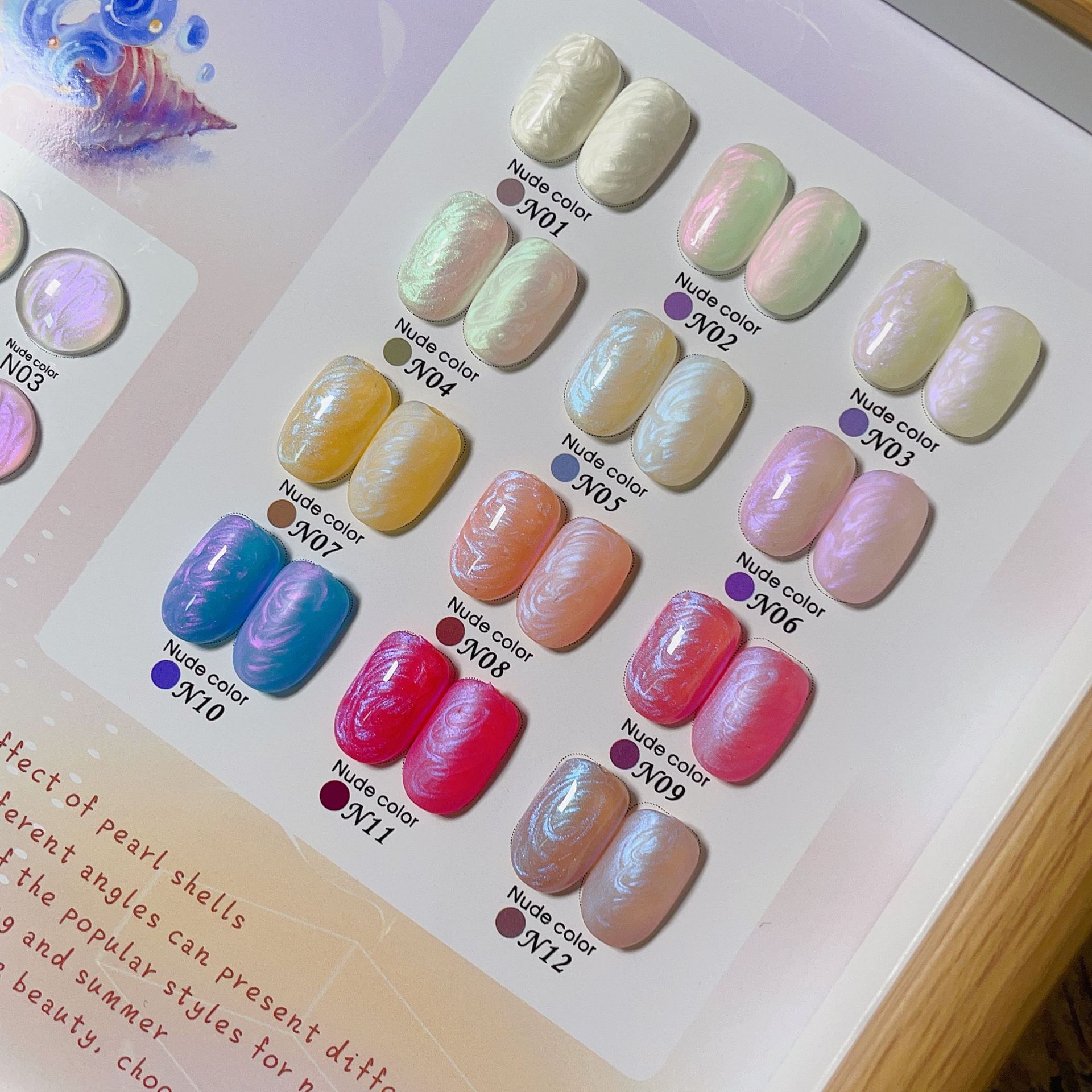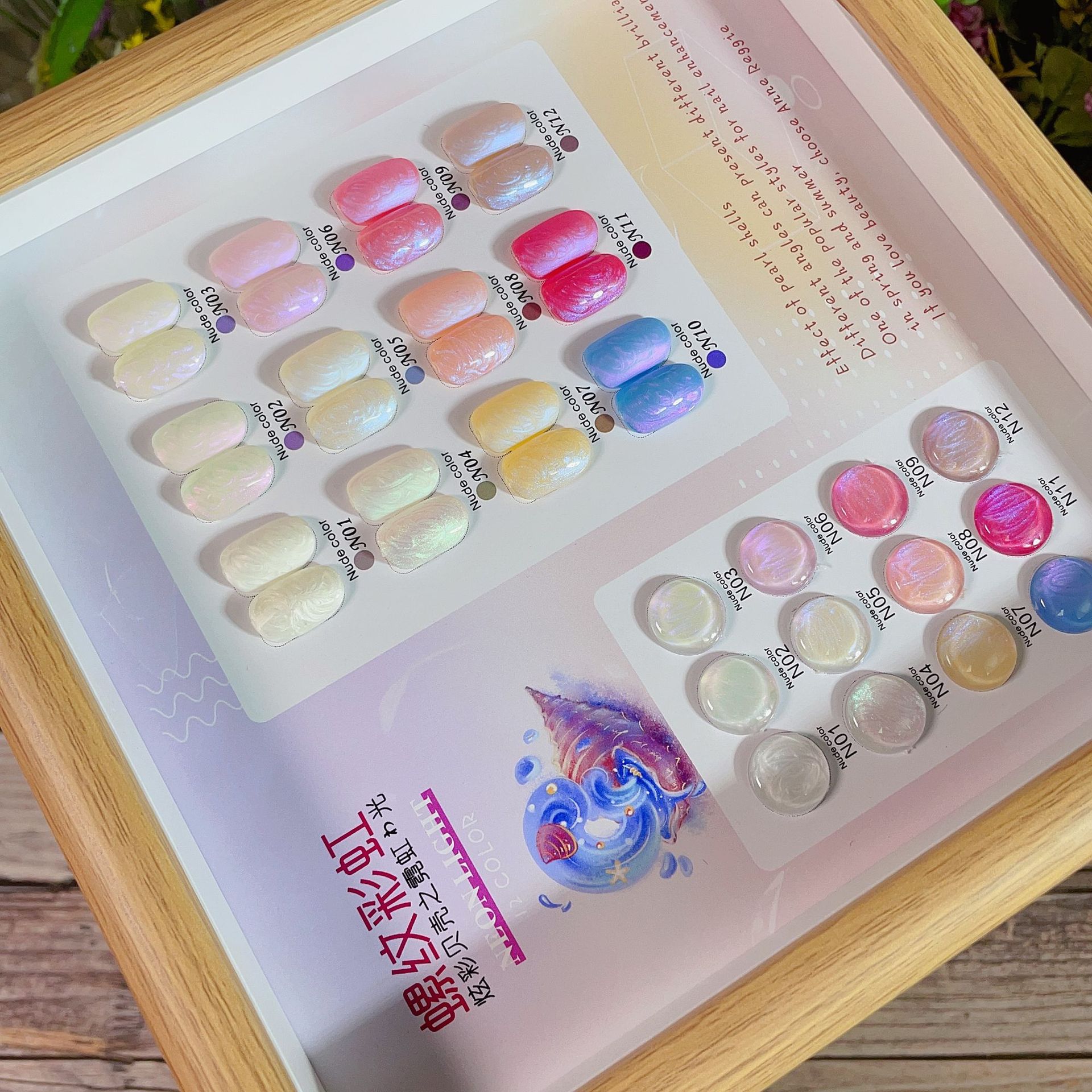 商品名称:12色螺纹彩虹(刷好色板)霓虹独角兽偏光珠光色美甲甲油胶
