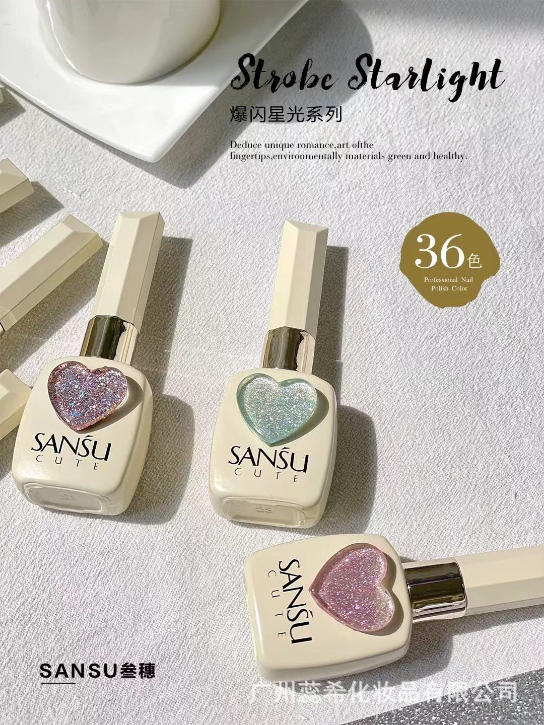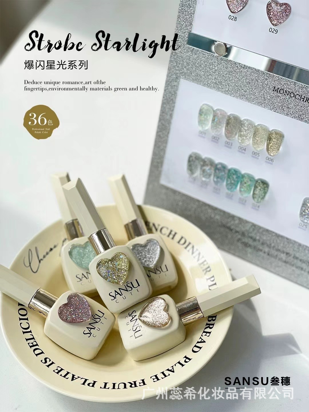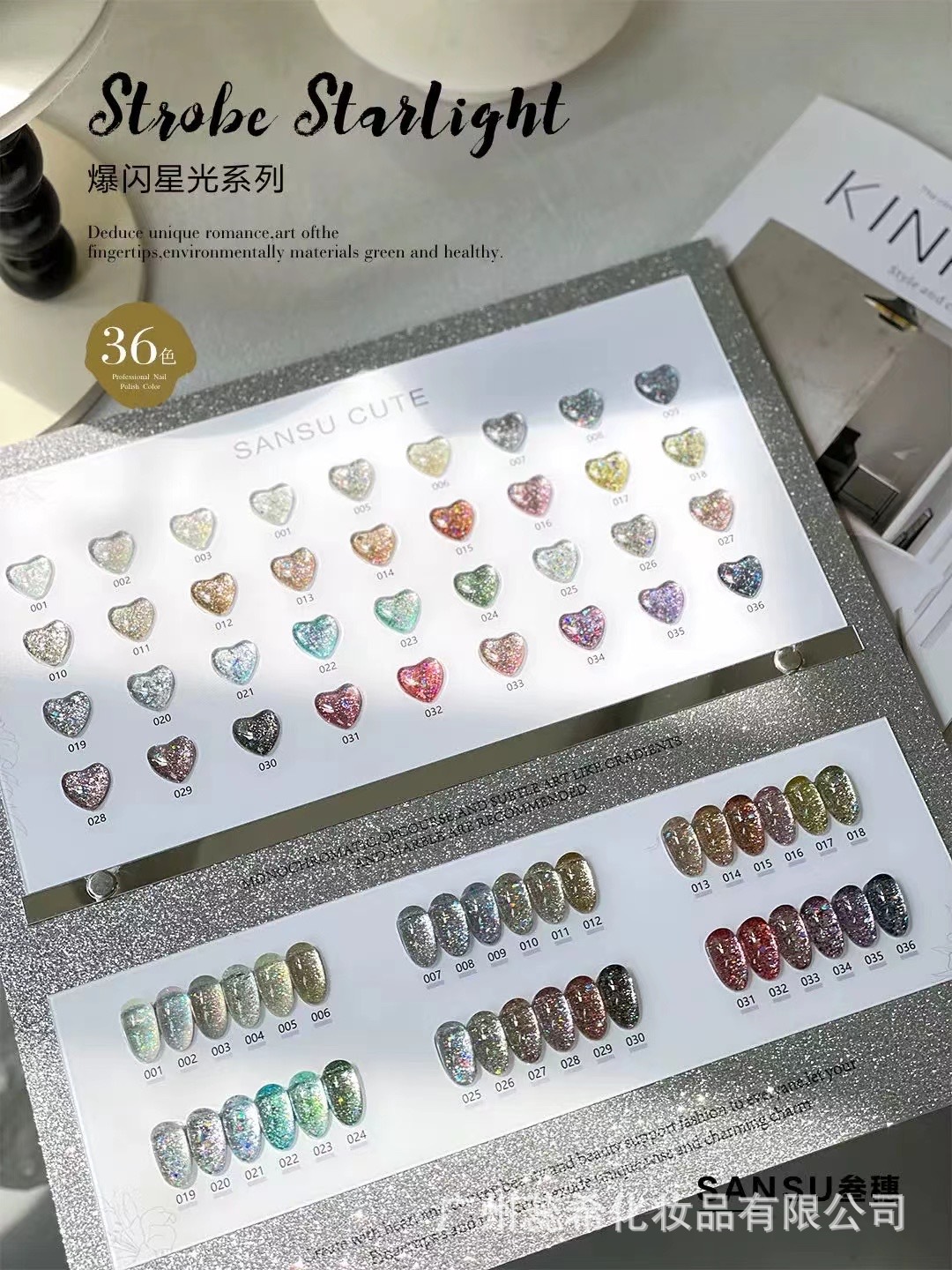 商品名称:sansu叁穗36色爆闪星光亮片甲油胶2024新款小套胶美甲店开店专用