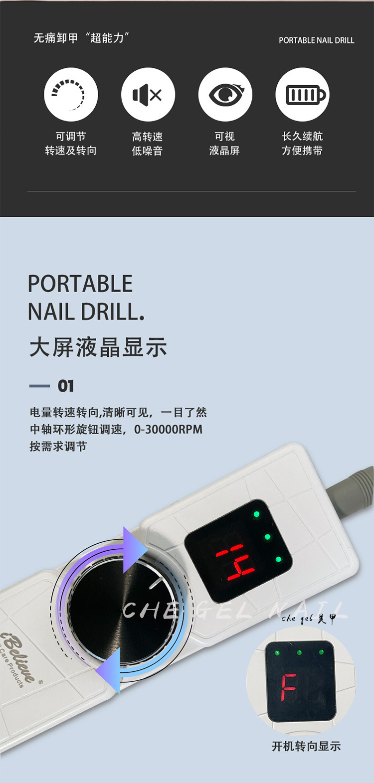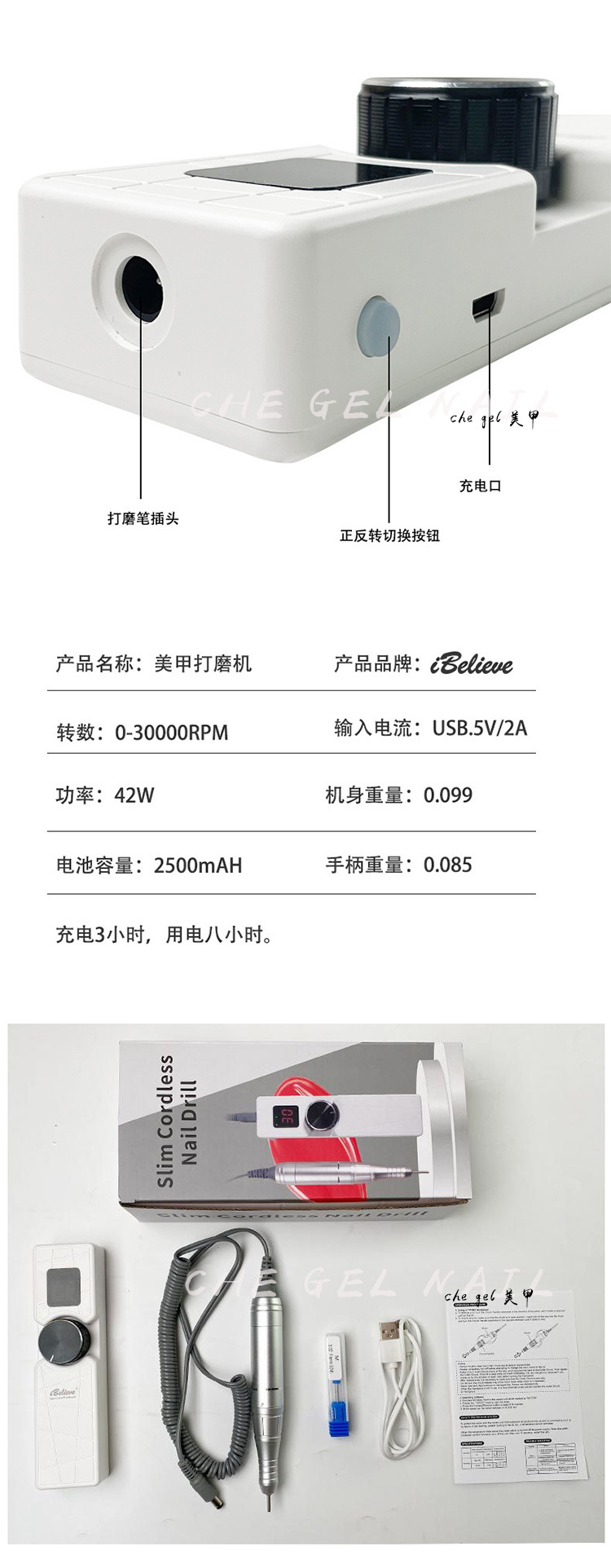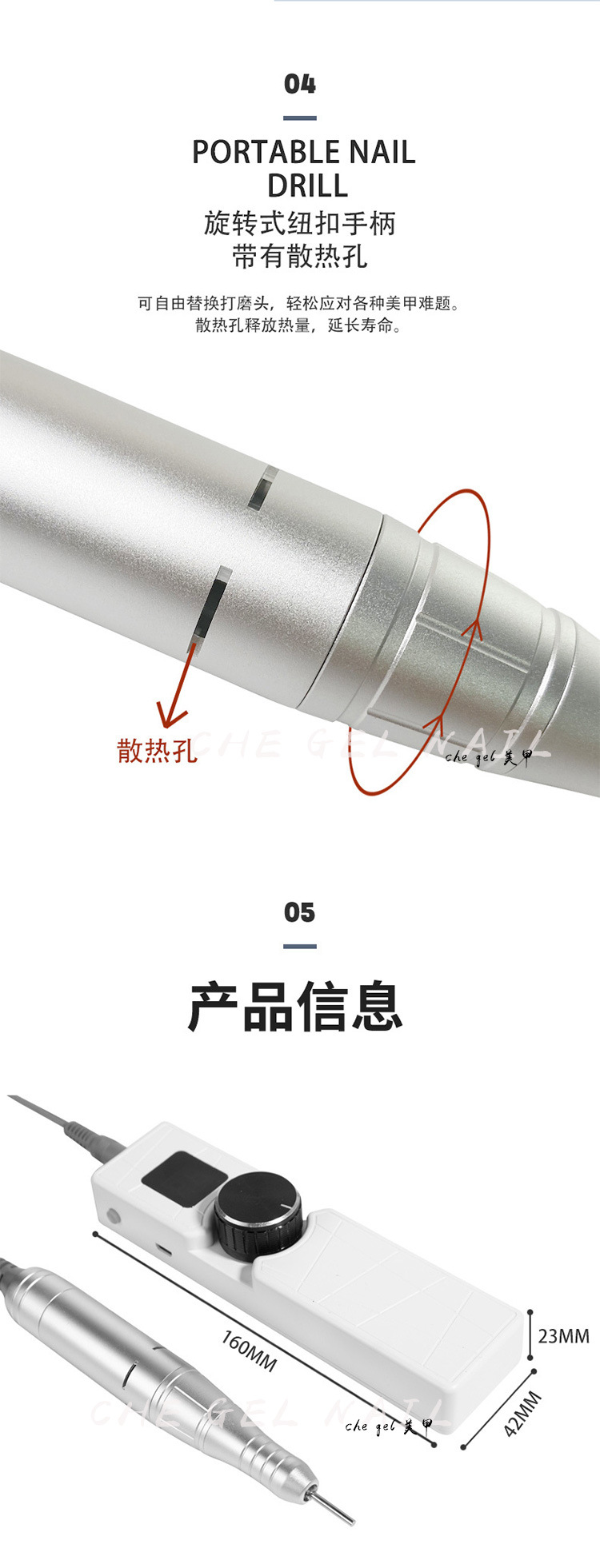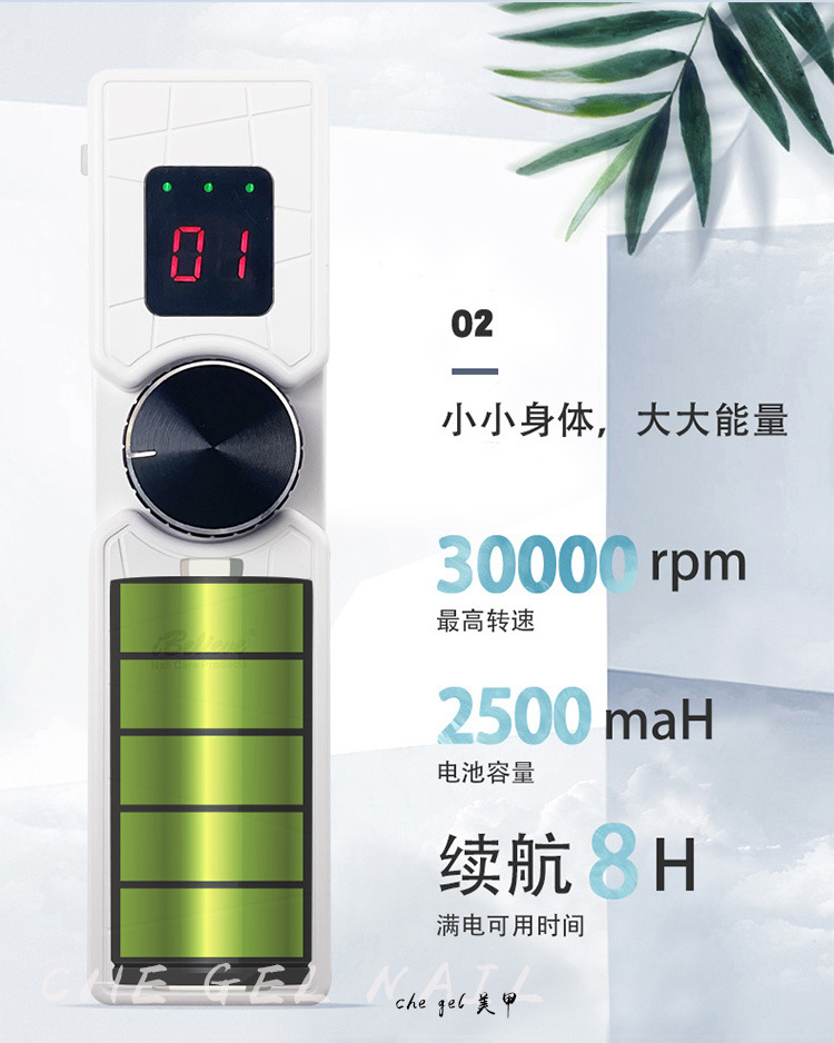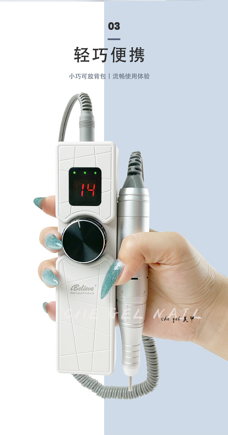 商品名称:美甲打磨机充电款小型便携式带电显示器电动抛光修甲死皮卸甲机