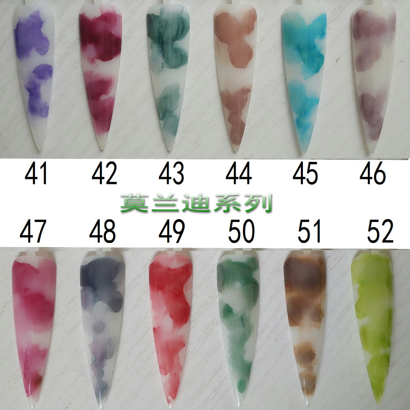 新延禧攻略莫兰迪水墨晕染液甲油胶合用大理石纹水彩晕染莫兰迪色 加金粉系列 拿货先拿样 合适再拿大瓶装。。。。