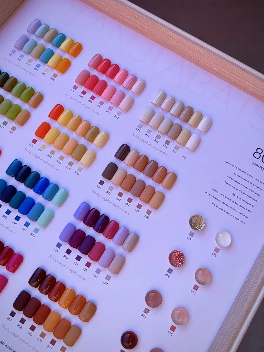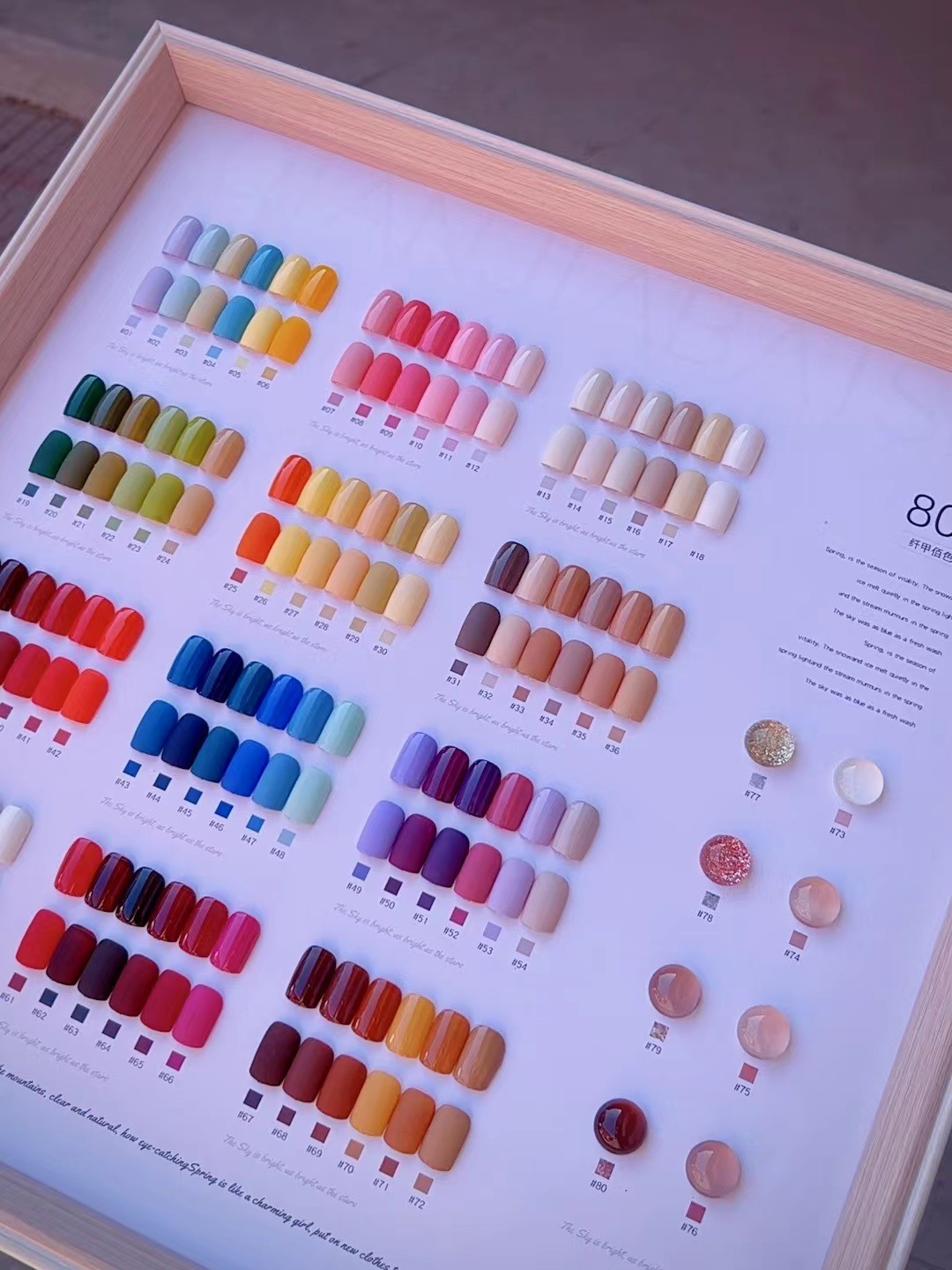 80色甲油胶木框色板韩式高级打版色卡批发2024年最新甲油胶系列