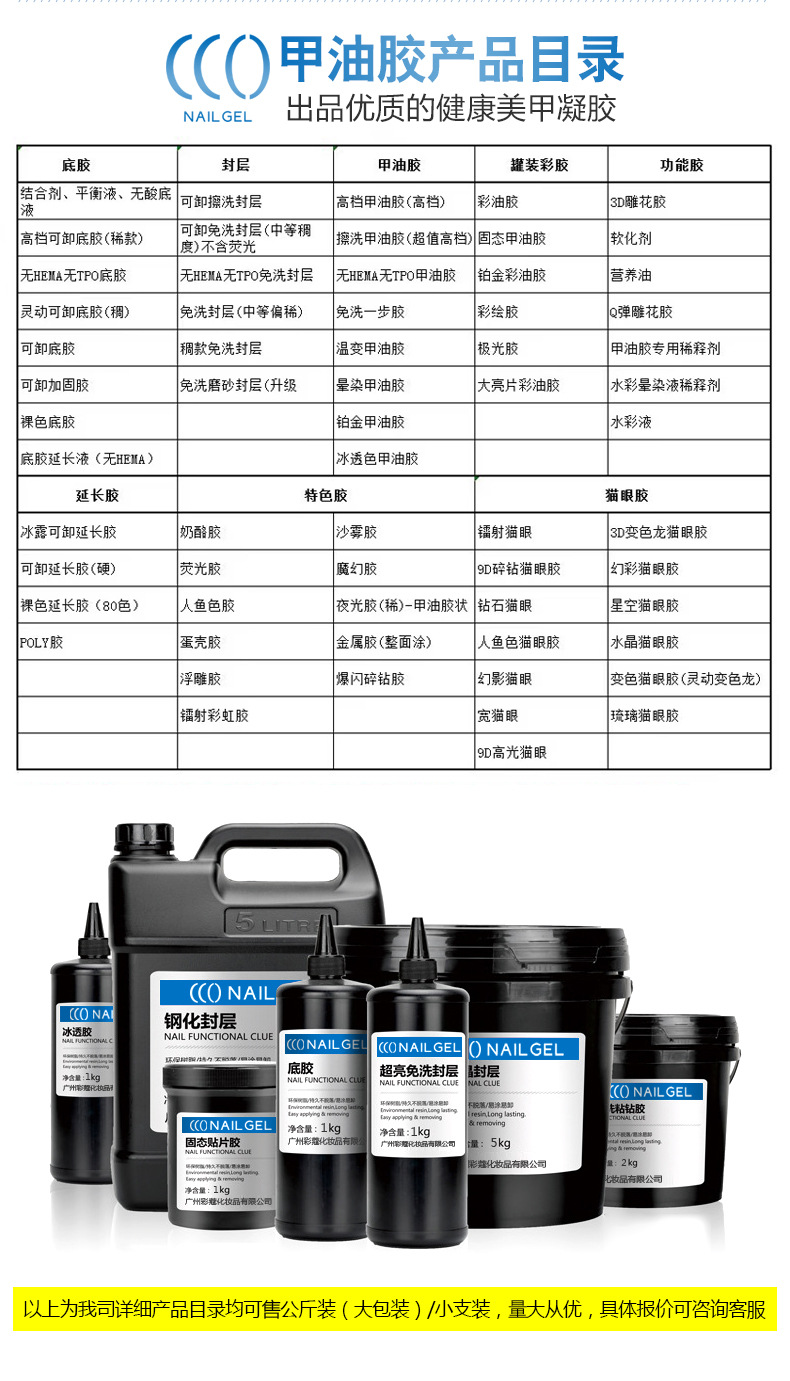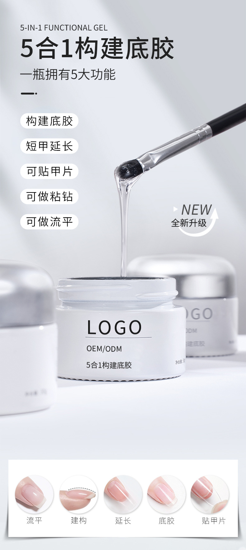 商品名称:美甲店5合一建构底胶延长胶流平贴甲片持久多功能胶公斤装甲油胶