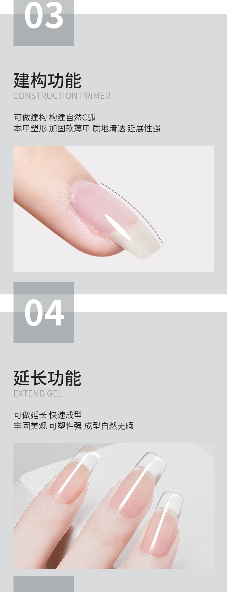美甲店5合一建构底胶延长胶流平贴甲片持久多功能胶公斤装甲油胶