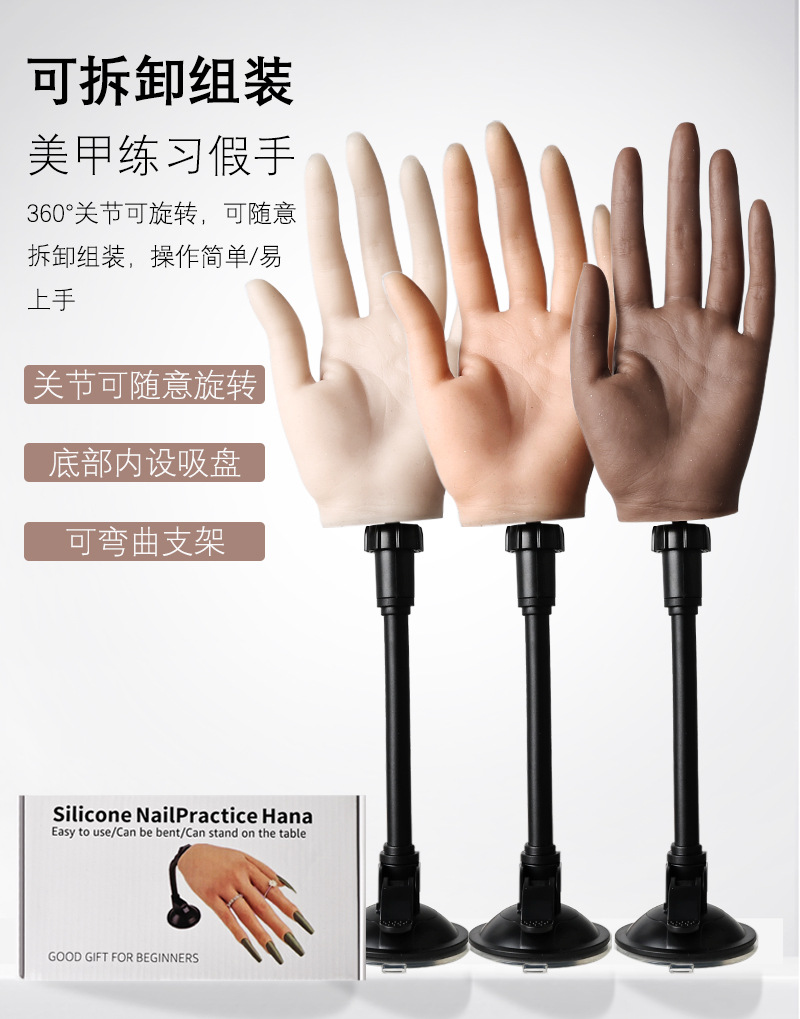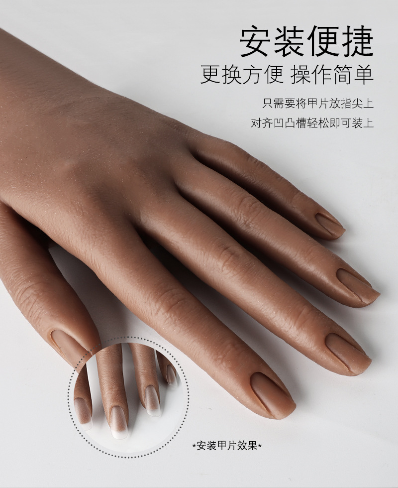 美甲练习假手硅胶练习手模型仿真肤色关节可弯曲硅胶指甲练习假手