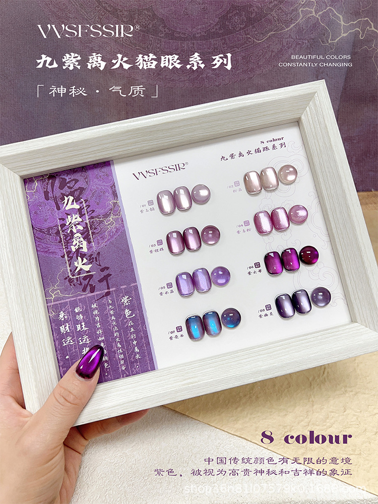 VVSFSSIR九离紫火葡萄紫猫眼8色紫色玻璃珠晶石猫眼甲油胶套