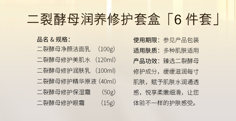 商品名称:欧佩二裂酵母润养修护六件套盒补水保湿清爽水乳护肤品套装化妆品