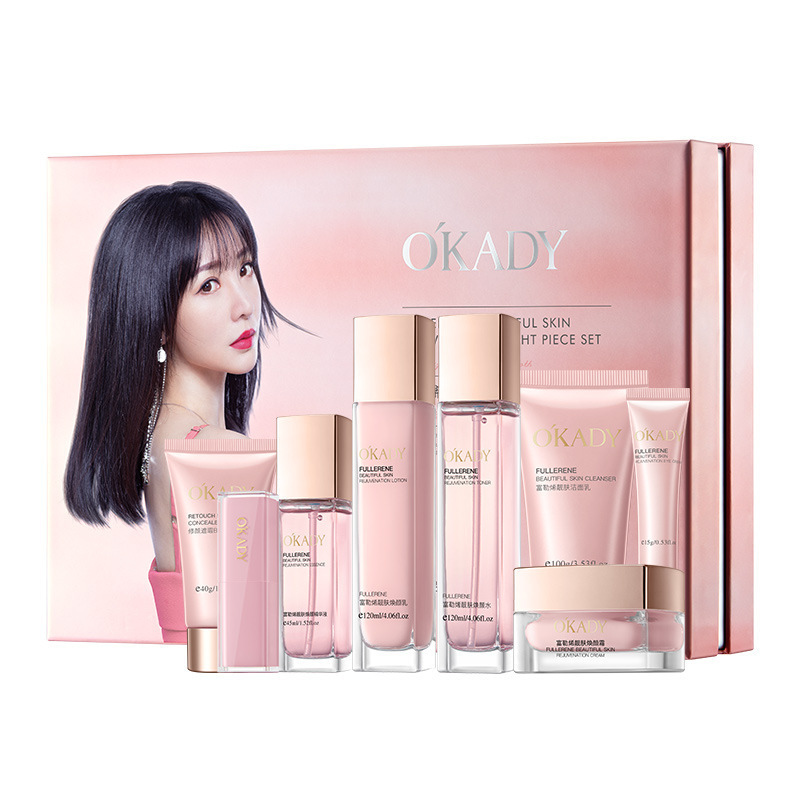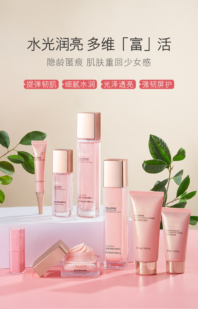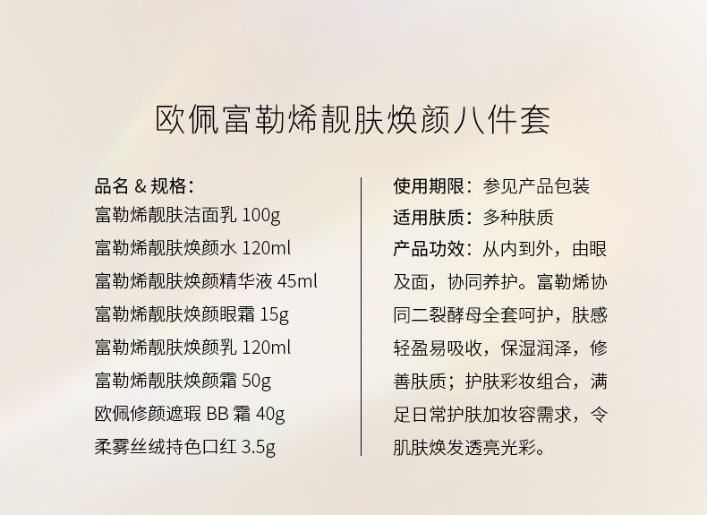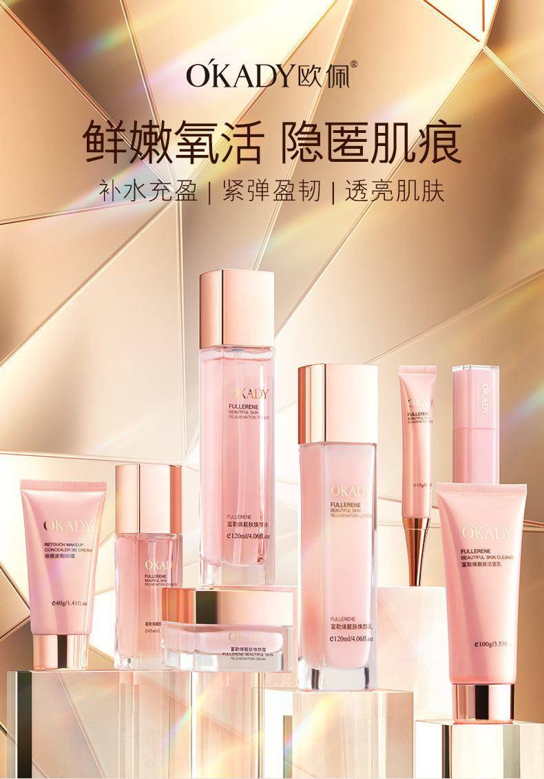 欧佩富勒烯八件套补水保湿水润透亮滋润肌肤护肤品化妆品套装批发