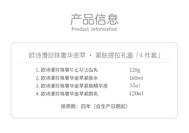 商品名称:欧诗漫奢华金萃护肤品套装抗皱紧致提亮补水保湿抗初老淡纹化妆品